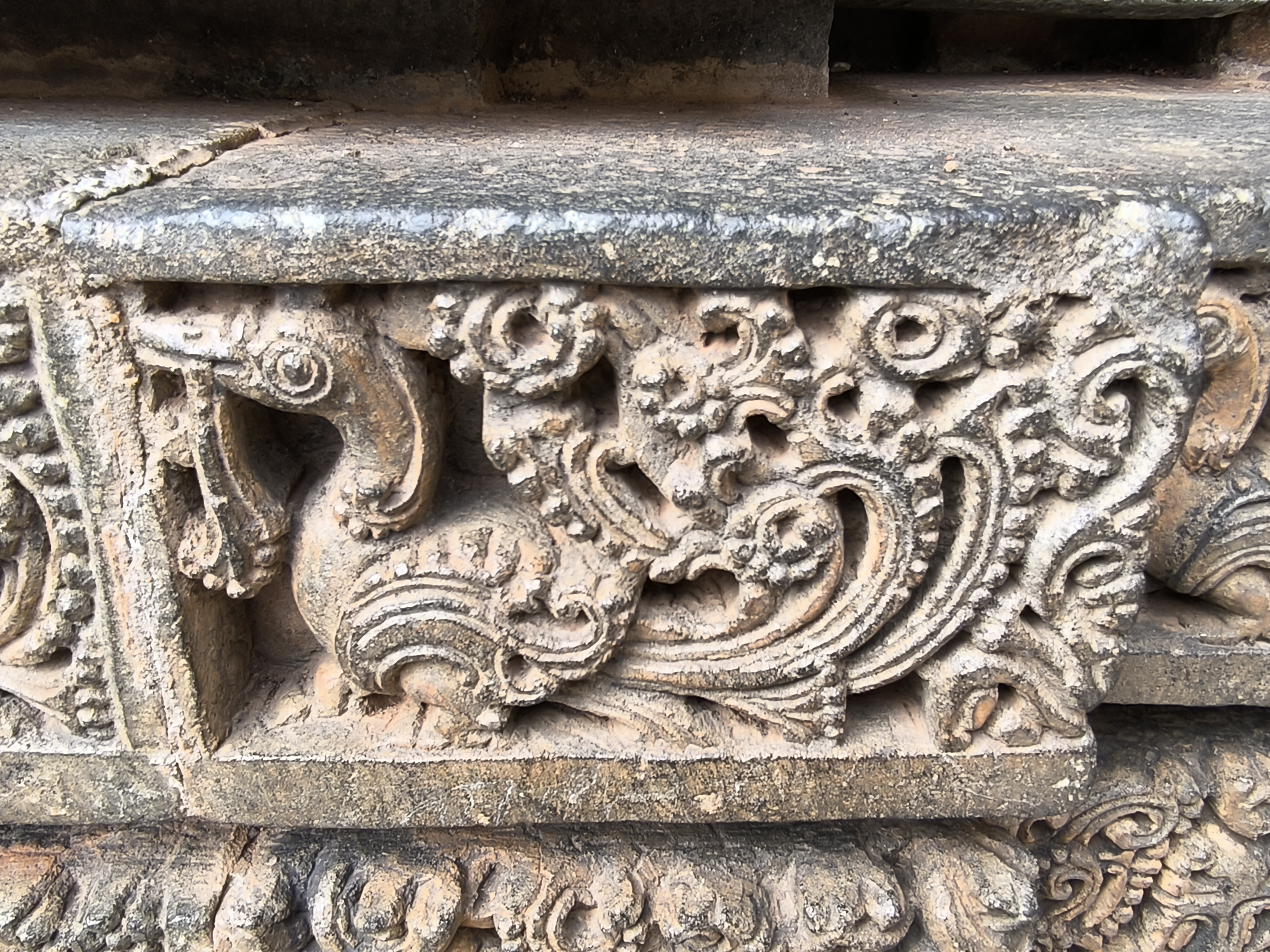 Doch das wohl Herausragendste ist die Außenfassade mit den drei 11m hohen Türmen über den Schreinen, die vollständig mit Reliefbändern, Figuren und Ornamenten ausgestattet sind. Die Arbeiten sind von höchster Qualität und glücklicherweise kaum verwittert. Ohne es wirklich zu bemerken, waren wir zwei Stunden in dem kaum besuchten Juwel und konnten uns nicht satt sehen.