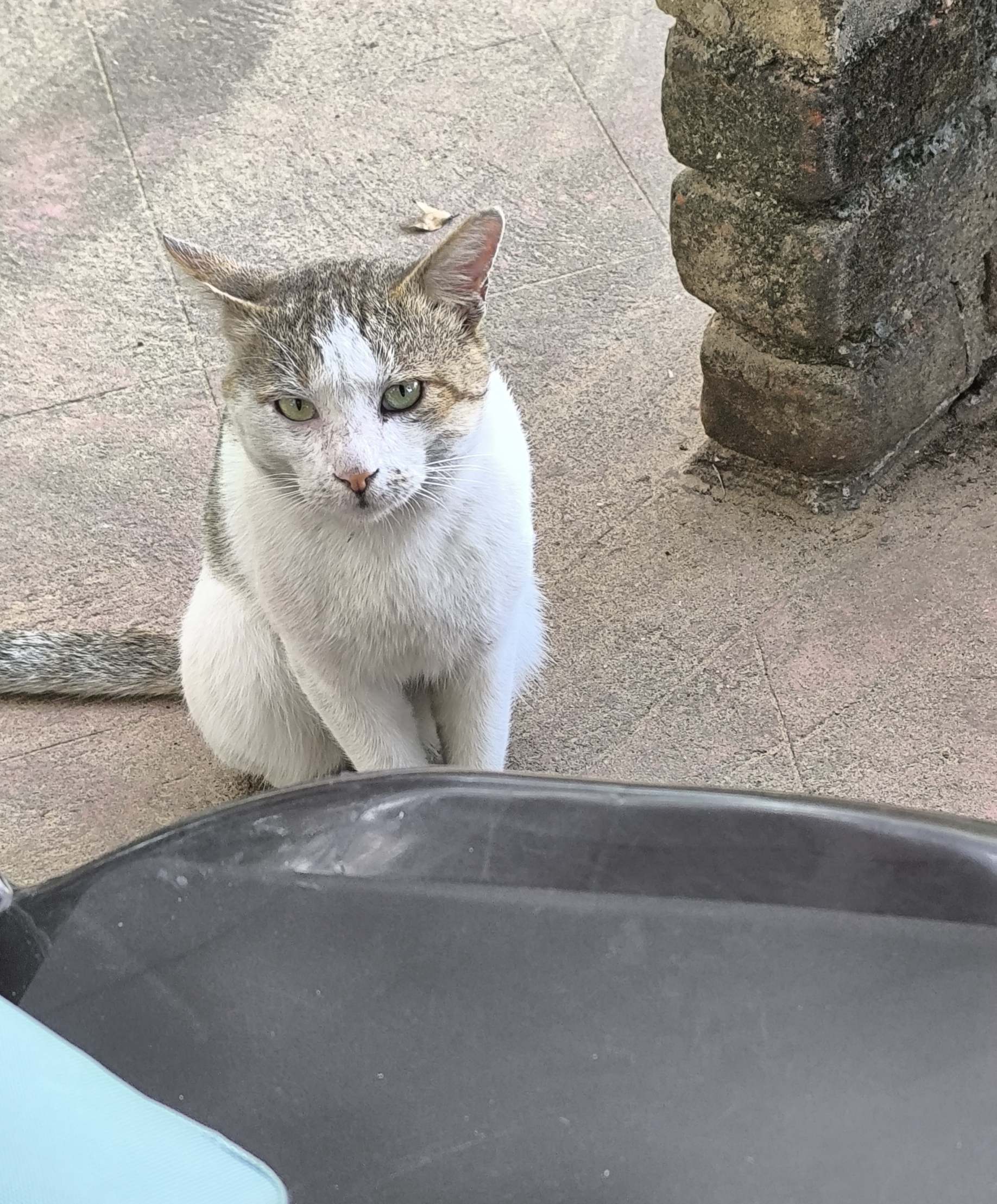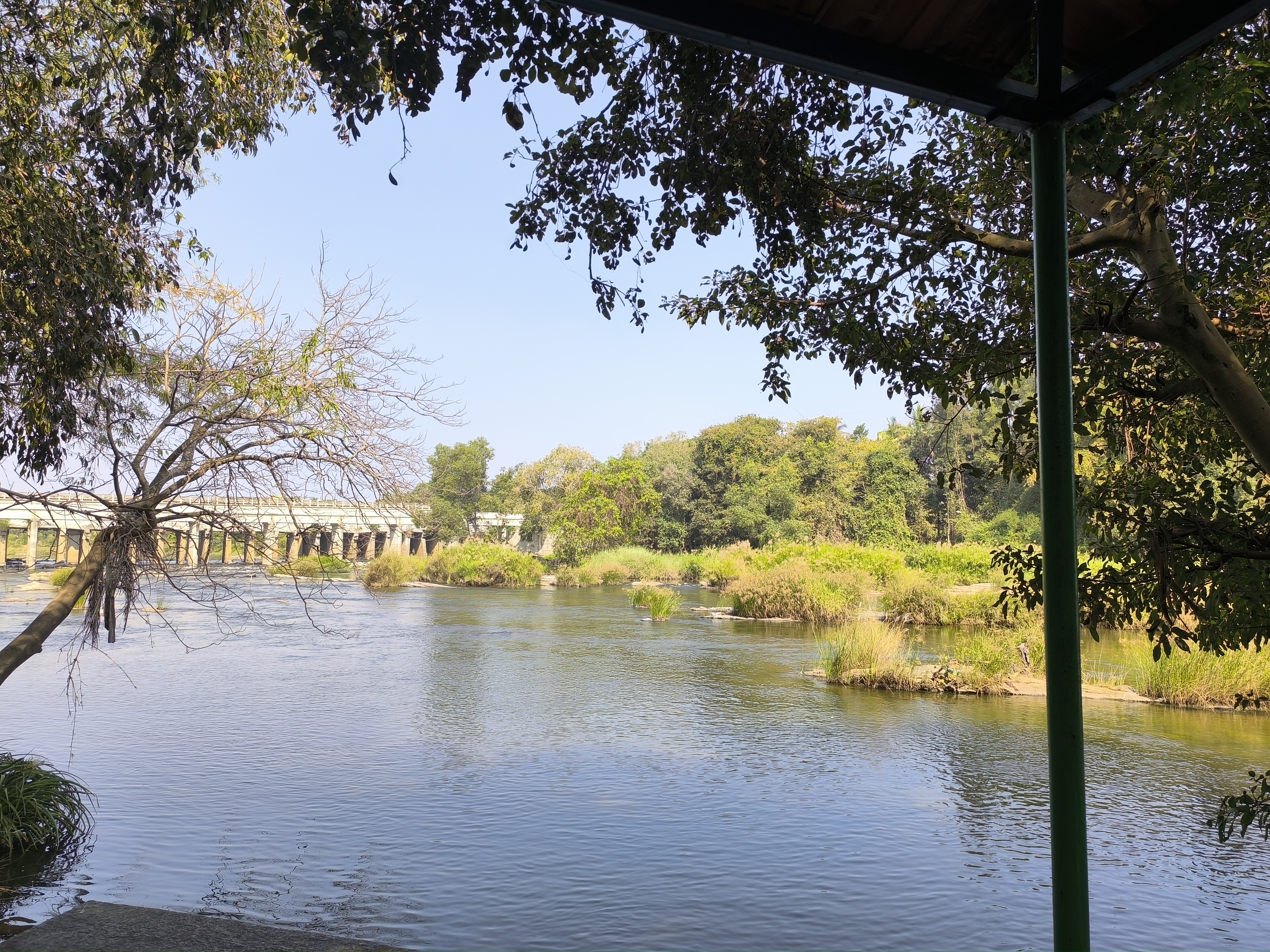 Drei Uhr, es wurde Zeit Mittag zu essen. Unser Fahrer brachte uns zu einem schattigen, am Kaveri gelegenen Resort, wo wir bei angenehmer Aussicht unter Aufsicht von Krähen und Katzen ausgezeichnet speisten.