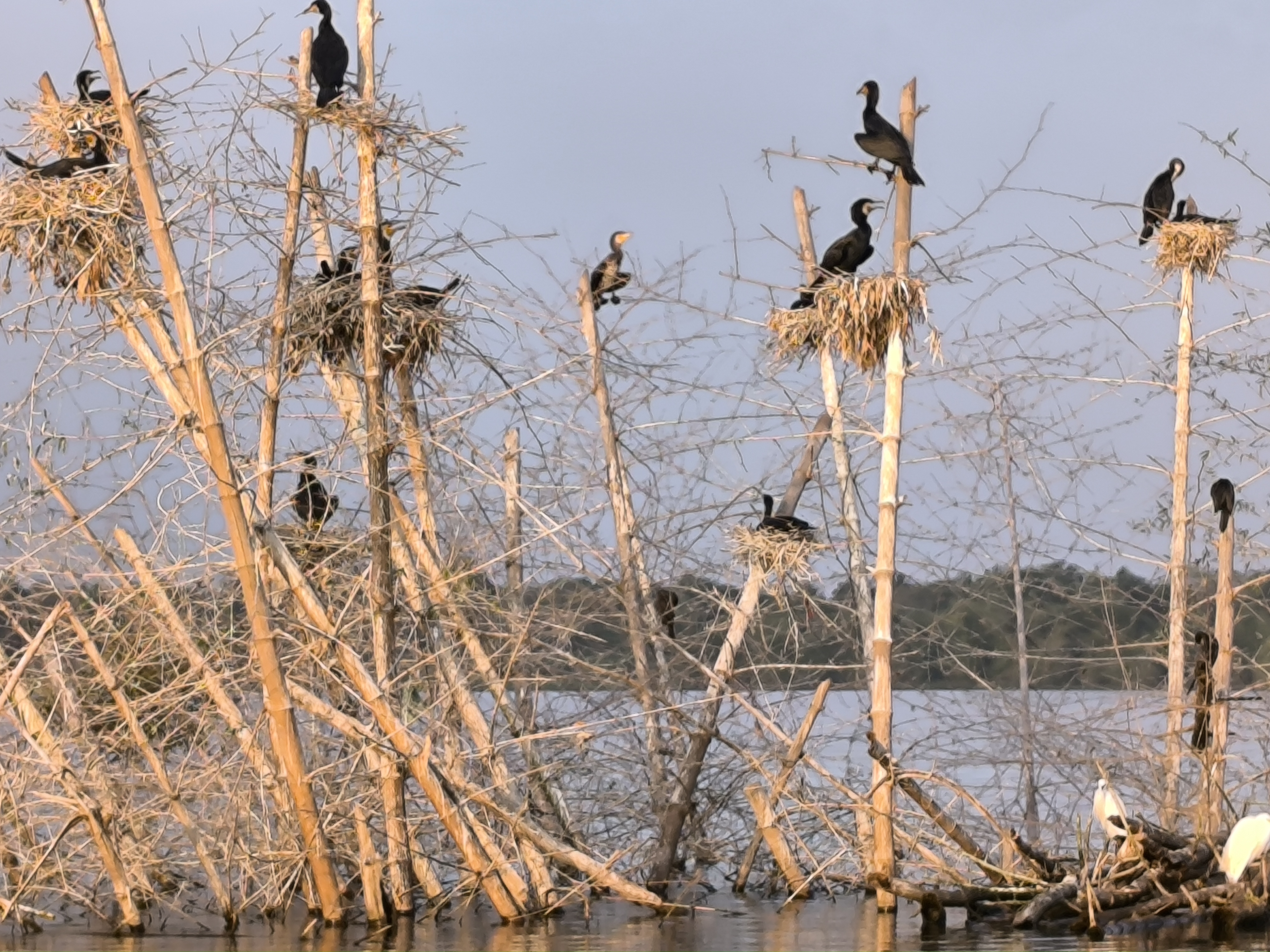Aber an den Ufern des Stausees entlang begegneten uns Fischadler, Storch, Kraniche, Elefantenmama mit Baby, Kormorane, diverse Affen und viel schöne Landschaft. Als wir aus dem Boot kletterten, dunkelte es bereits, und auf der Rückfahrt wurden wir ein letztes Mal richtig durchgerüttelt. Nach diesem Tag waren wir doch etwas geschafft.