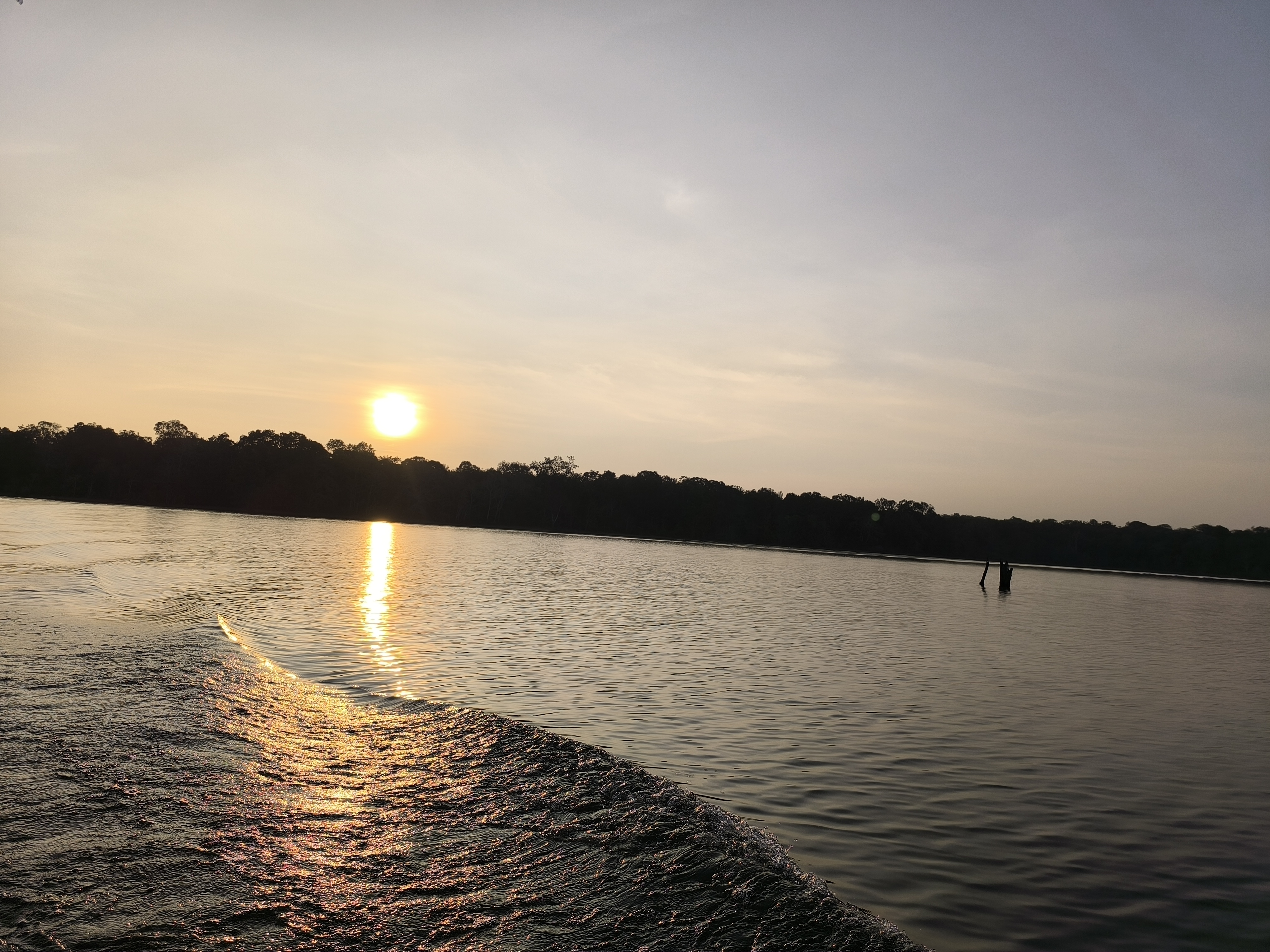 Um 4:00 früh wurden wir telefonisch geweckt. Dann folgten ca. 50 Minuten Fahrt auf 4 km einer Straße, deren Unzumutbarkeit nicht zu schildern ist und das heute 4x, da wir auch noch eine Bootsafari gebucht hatten.