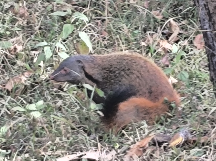 Die Morgensafari war wenig ertragreich, die Piste wesentlich besser als die Straße, und außer einem Mungo und einem kleinen Rudel Wildschweine war in drei Stunden nichts Neues zu erblicken.