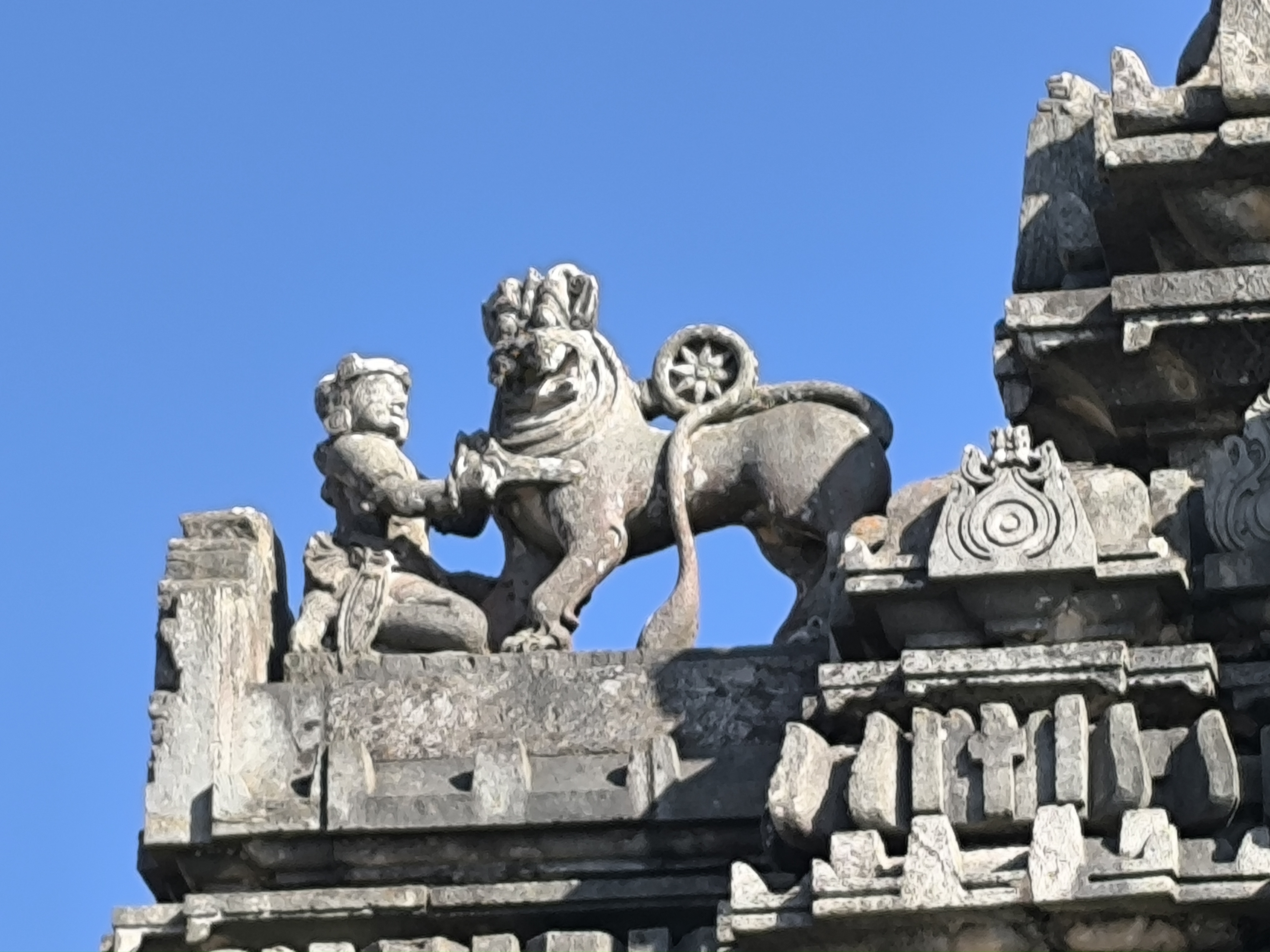 Heute werden wir nochmals von unserem gestrigen Guide begleitet, was sich als sehr glücklich erweist. Auf dem Weg nach Halebidu zweigen wir bald in eine kleine Ortschaft ab, in der ein mit Gewürzhandel reich gewordener Kaufherr den ersten Hoysala-Tempel überhaupt errichten ließ. Es ist ein kleinerer Tempel mit fünf Türmen und allen Merkmalen der folgenden Tempel, nur der überbordende ornamentale und figurale Schmuck fehlt noch.