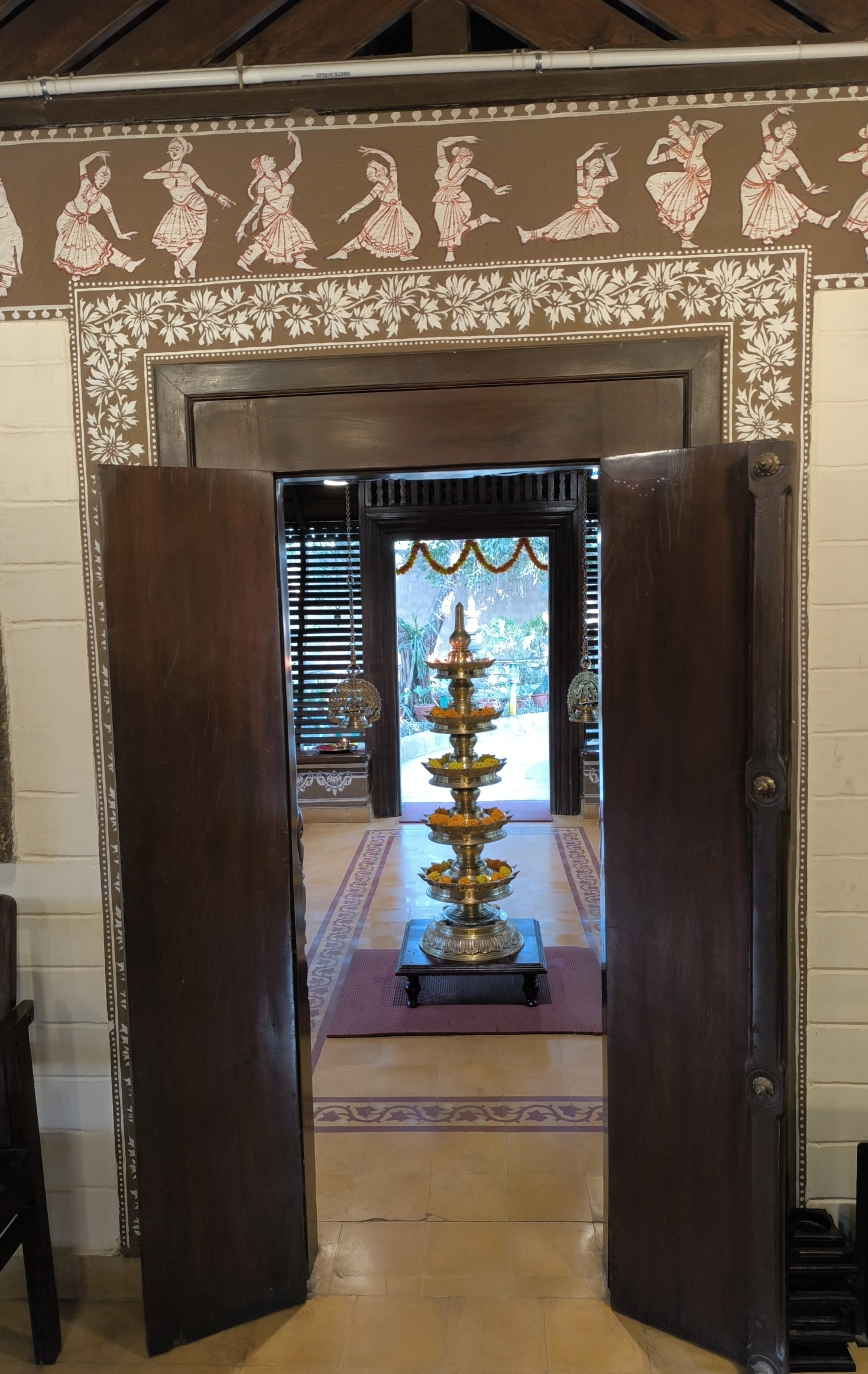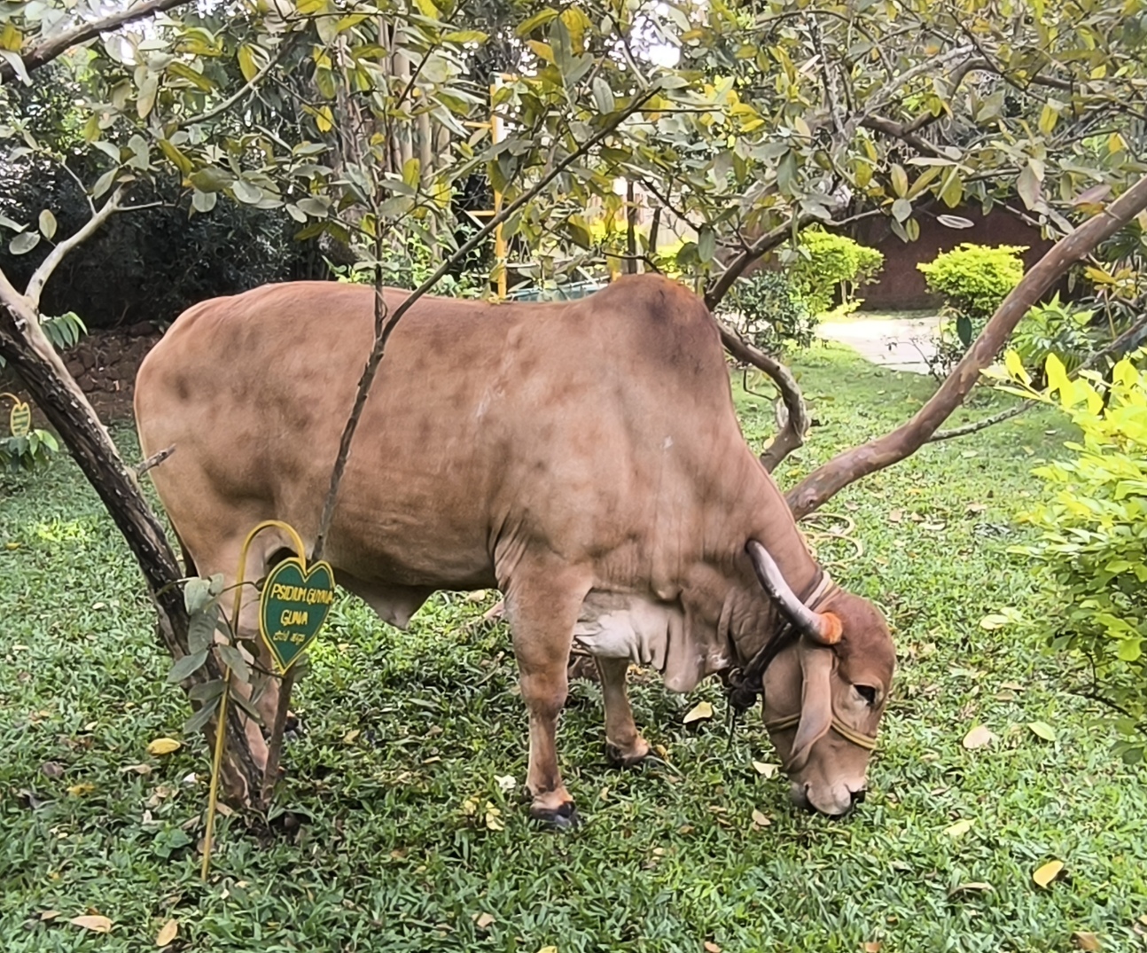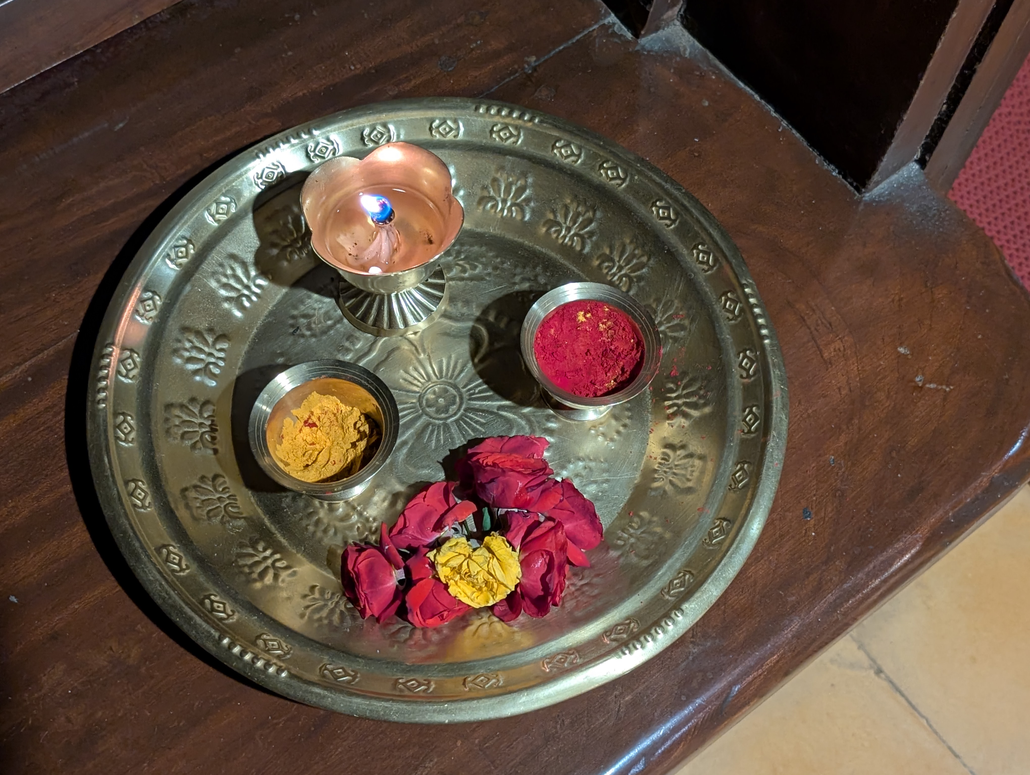 Es gibt auch einen hauseigenen Tempel. Mehrmals täglich finden Zeremonien statt - am Morgen um 6.00 mit einer Kuh. Wir haben um 6 Uhr zwar noch geschlafen, die Kuh war aber um 7.30 Uhr auch noch da.