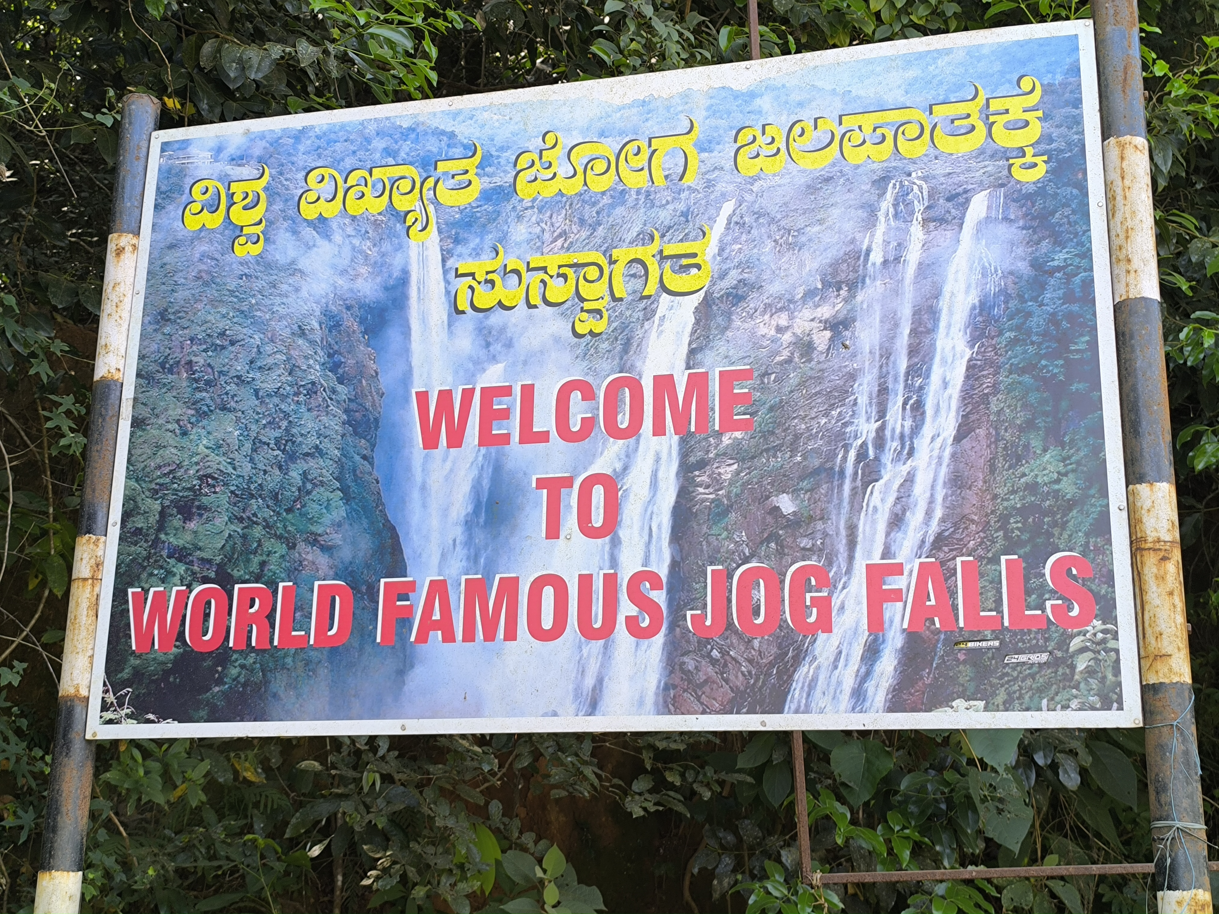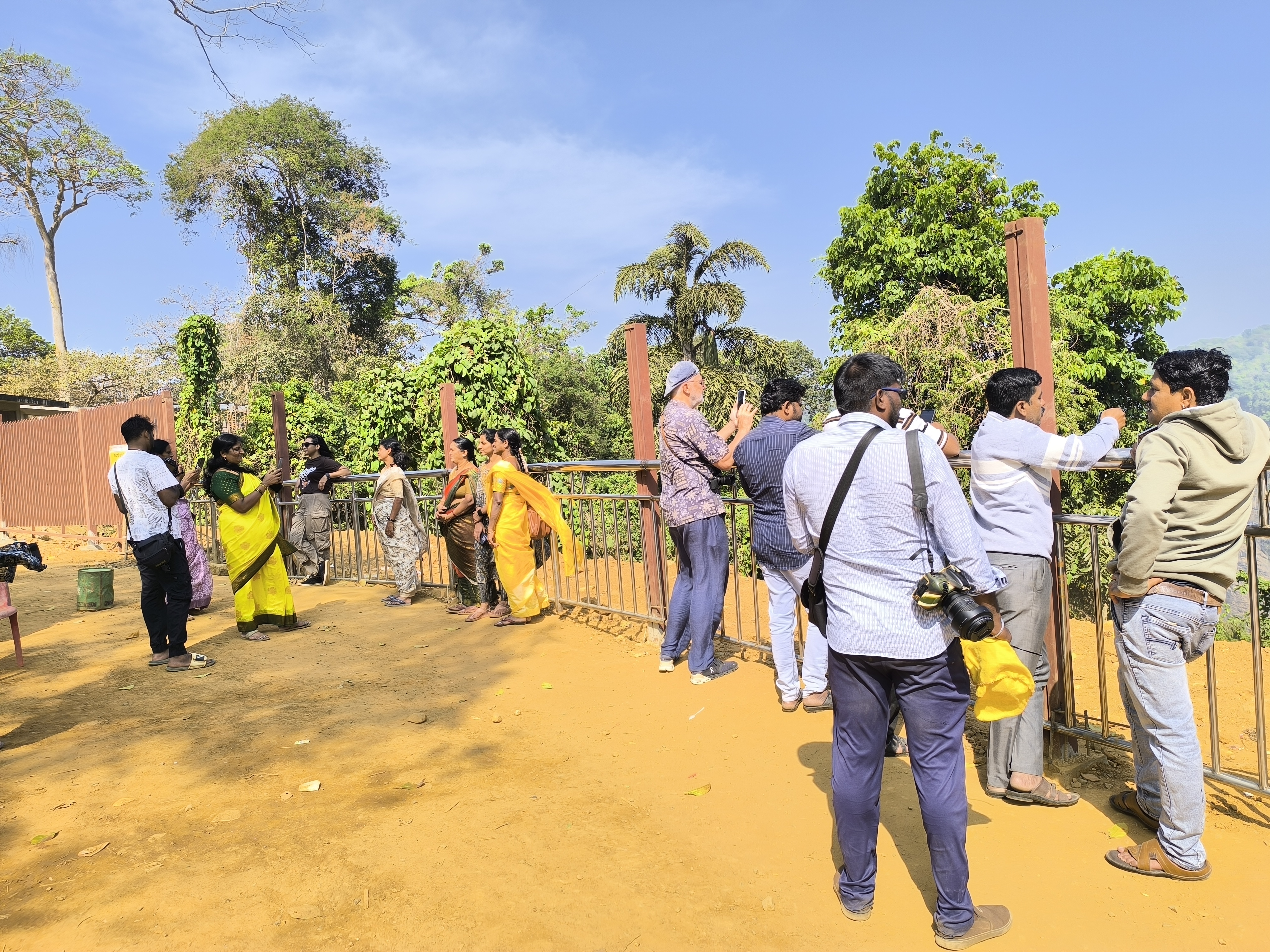 Google weiß also doch nicht alles! Trotz Recherche fanden wir eine Riesenbaustelle mit Absperrungen vor und der Weg nach unten über die beschriebenen 1400 Stufen blieb uns verwehrt. Es gab ein paar Parkplätze, viele Fotografen die Besucher ablichteten (for money) und einen kleinen, staubigen Platz, der mit Geländer gesichert war und dessen Bäume, die die spärliche Aussicht auf die Jogg Falls verstellen könnten, gefällt oder gekürzt worden waren.