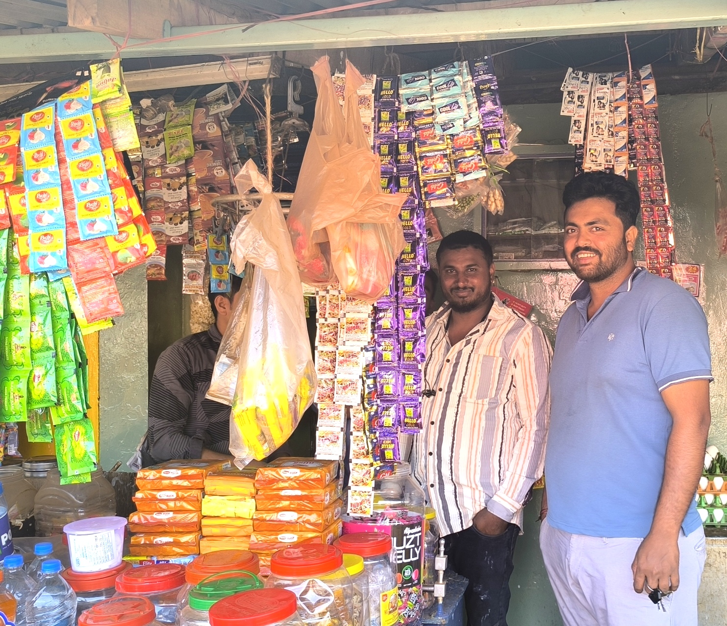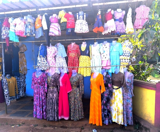 Mr Bineesh war dann so nett uns in eine kleine Ortschaft mit Geschäftchen und mehrstöckigen (Textil) Geschäften zu bringen. Wir wanderten gemütlich durch, wurden von freundlichen Kühen beäugt und ebensolchen Menschen gegrüßt.