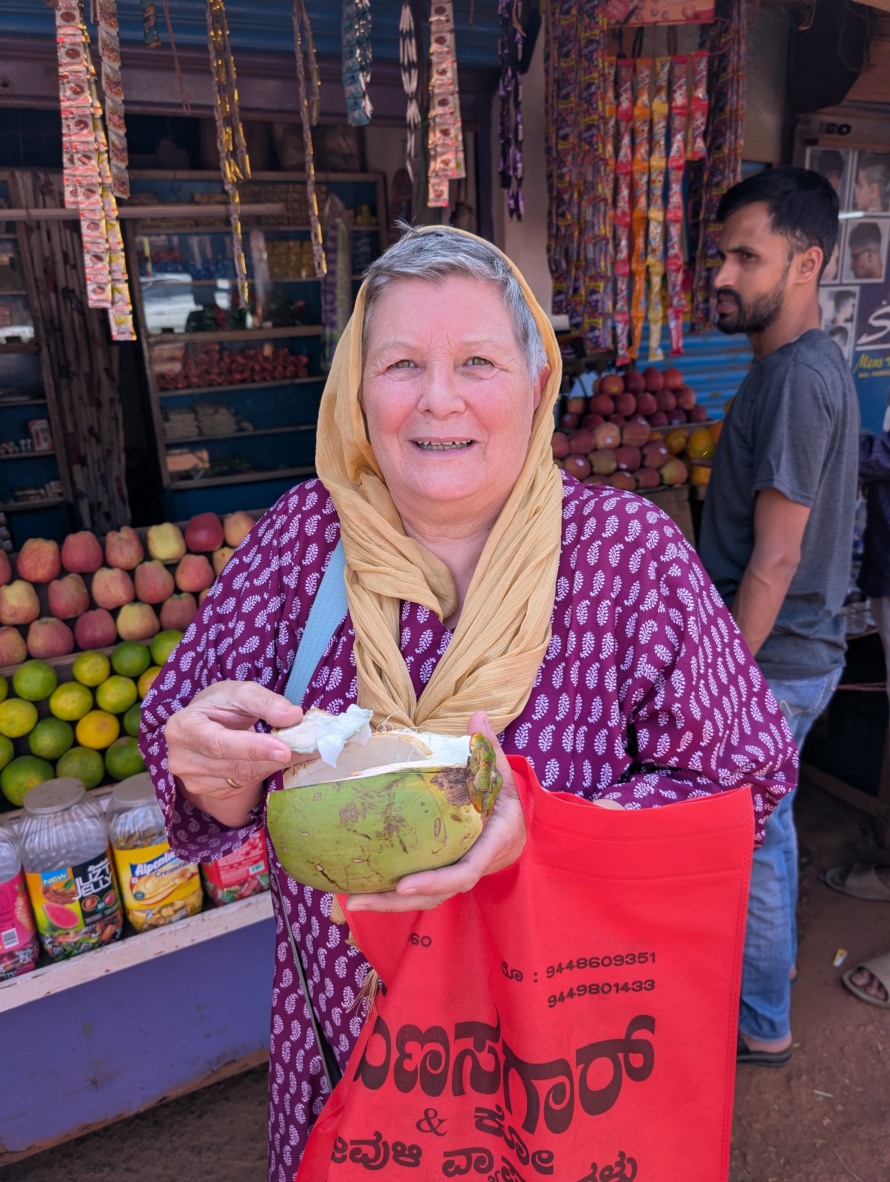 Wir kauften Obst, tranken eine Kokosnuss leer (köstlich) und stellten fest, dass die wenigen geschlossenen Läden Christen gehörten. Morgen geht es nach Gokarna.