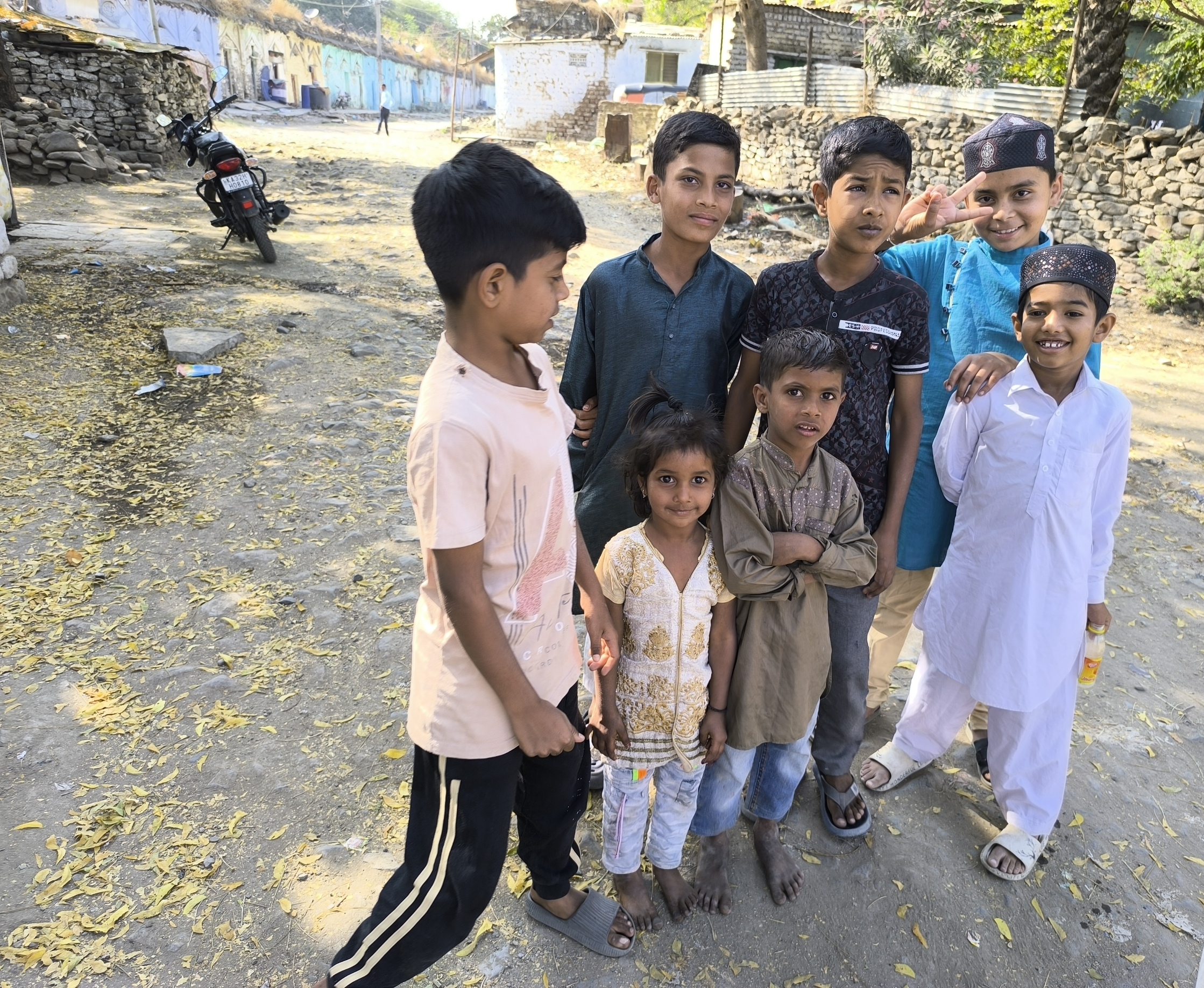 Also zwischenzeitlich eine Wanderung durch das Fort von Gulbarga, in dem die Moschee liegt, und in dem sich inzwischen Moslems in kleinen, recht farbigen Häuschen angesiedelt haben. Wie üblich wurden wir wieder von neugierigen Kindern umringt.
