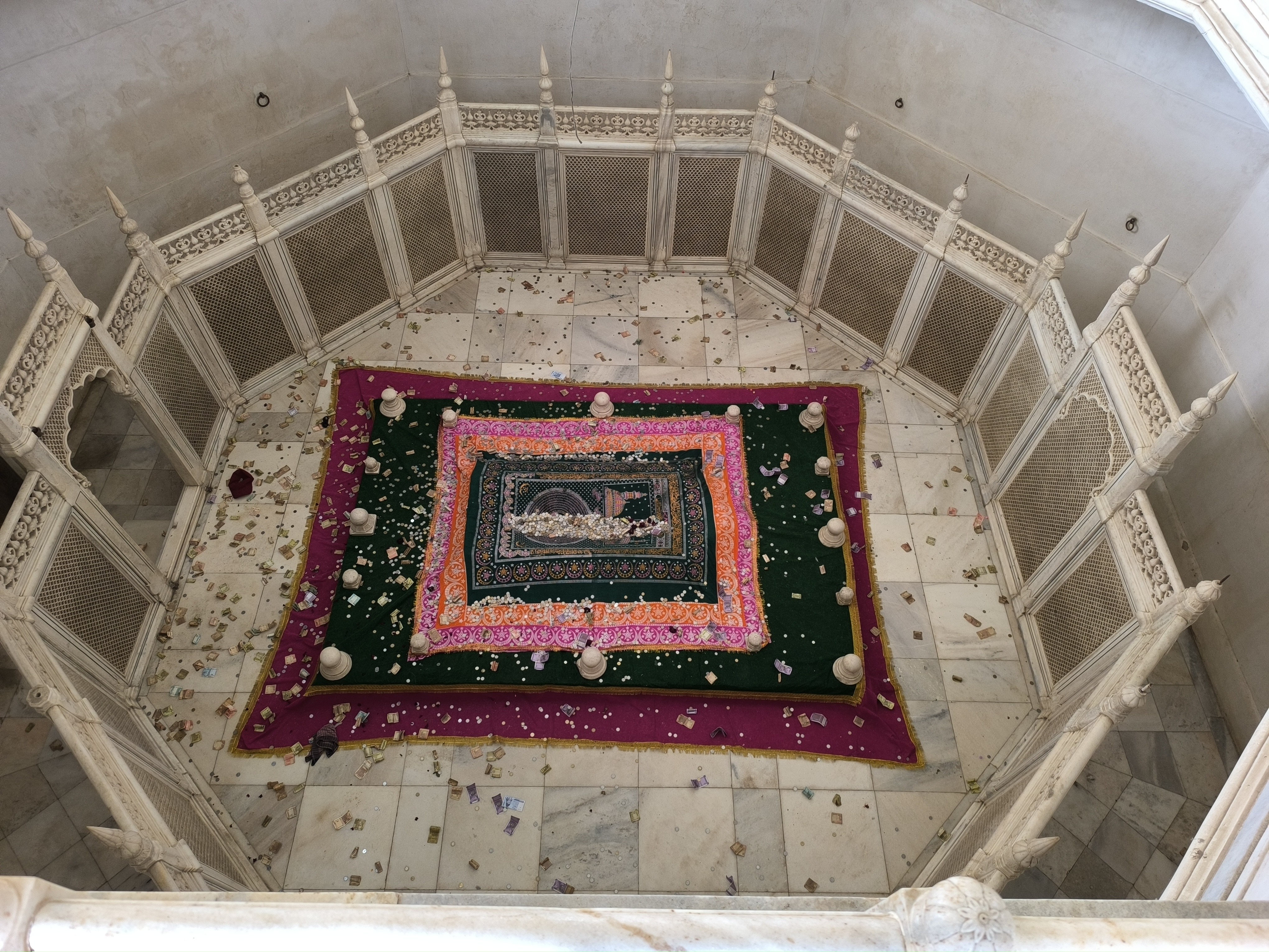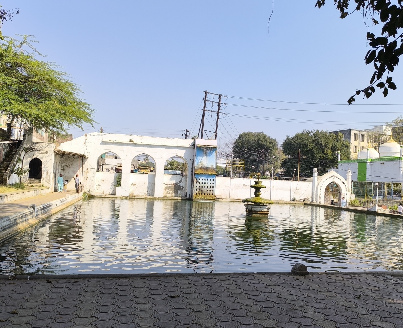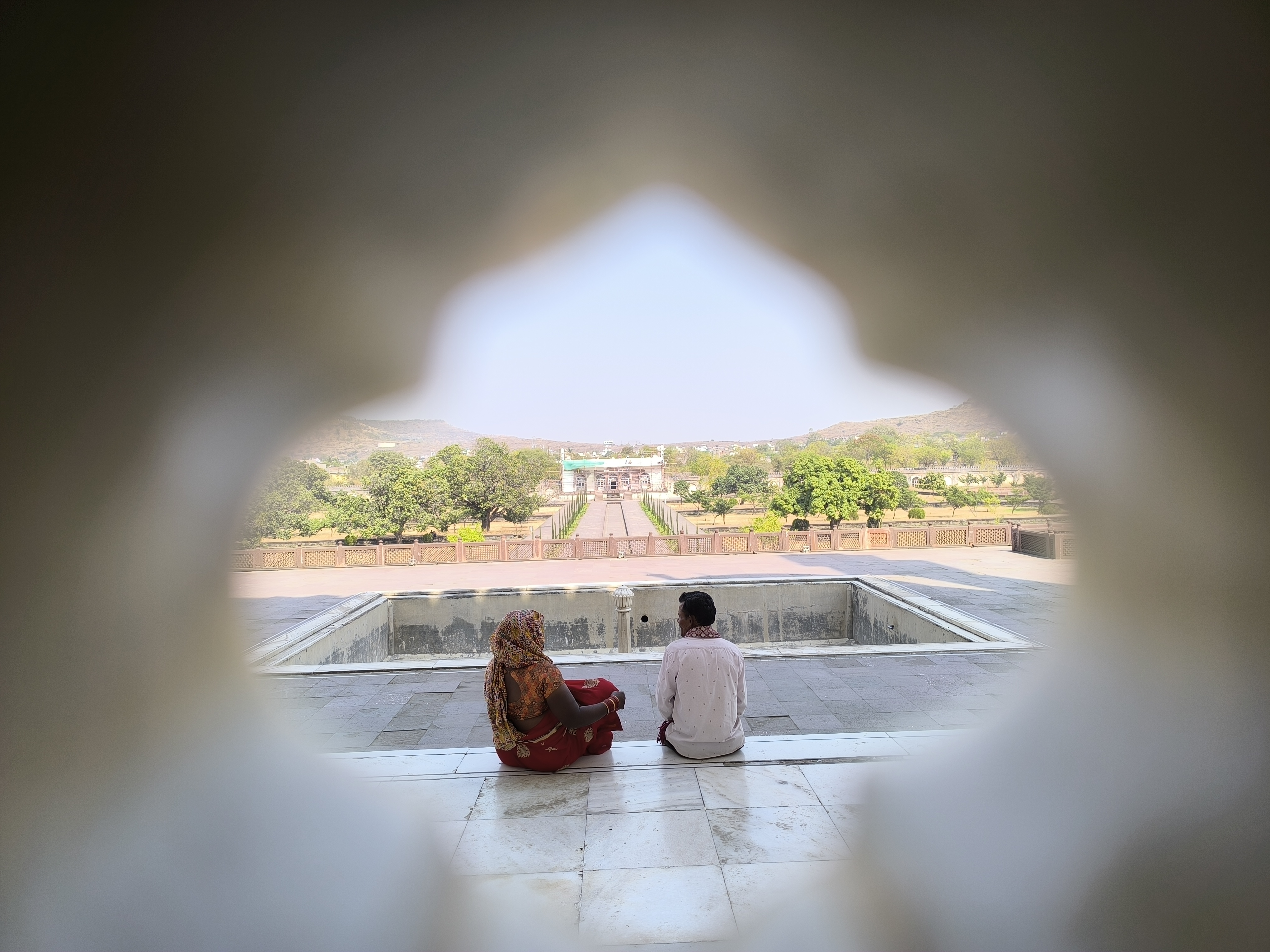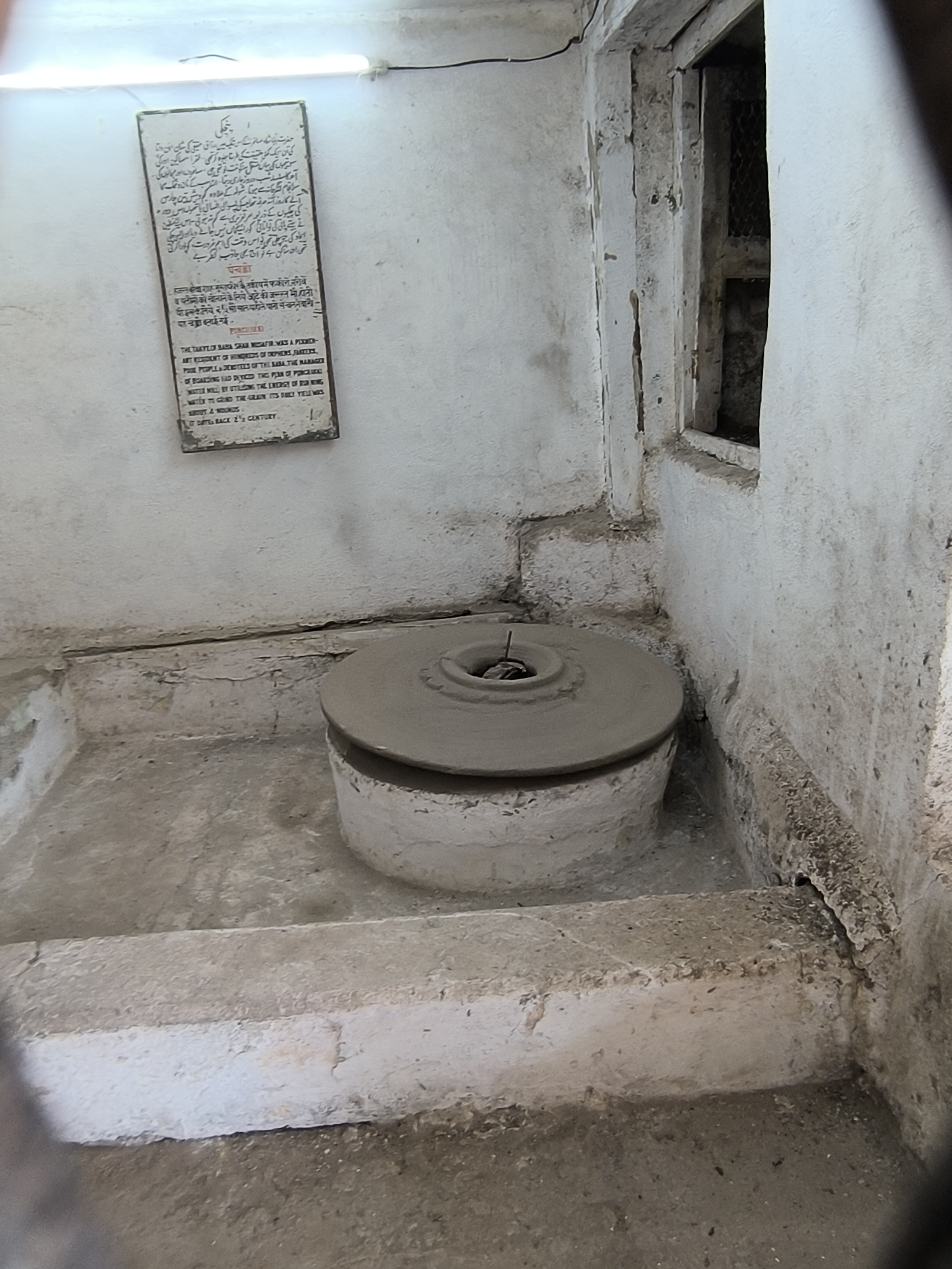 Nach dem heutigen guten Frühstück waren Aurangabads Sehenswürdigkeiten angesagt und unsere Hotelrezeptionistin verhandelte mit einem "ich spreche kein Wort English" Tuktukfahrer die geplante Tour. Die erste Station war Panchakki, eine mehr als 300 Jahre alte Wassermühle bei der die Menschen ihr Getreide mahlen lassen konnten. Das Wasser wurde durch unterirdische Kanäle 6 km weit zur Mühle geleitet. Es füllt zuerst ein großes Wasserbassin und fließt dann über das Mühlrad. Die Mühle steht in einem hübschen, relativ großen Hof mit einem 600 Jahre alten schattenspendenden Banyanbaum und einem bezaubernden, kleinen Mausoleum für einen der Lehrer Aurangzebs und dessen Frau. Wie üblich, dürfen Frauen dieses nicht betreten. Für die Menschen stand ein großer Speiseraum zur Verfügung, der von einem Wasserbecken als Decke gekühlt wurde, umgeben von Ruhe - und Schlafräumen.