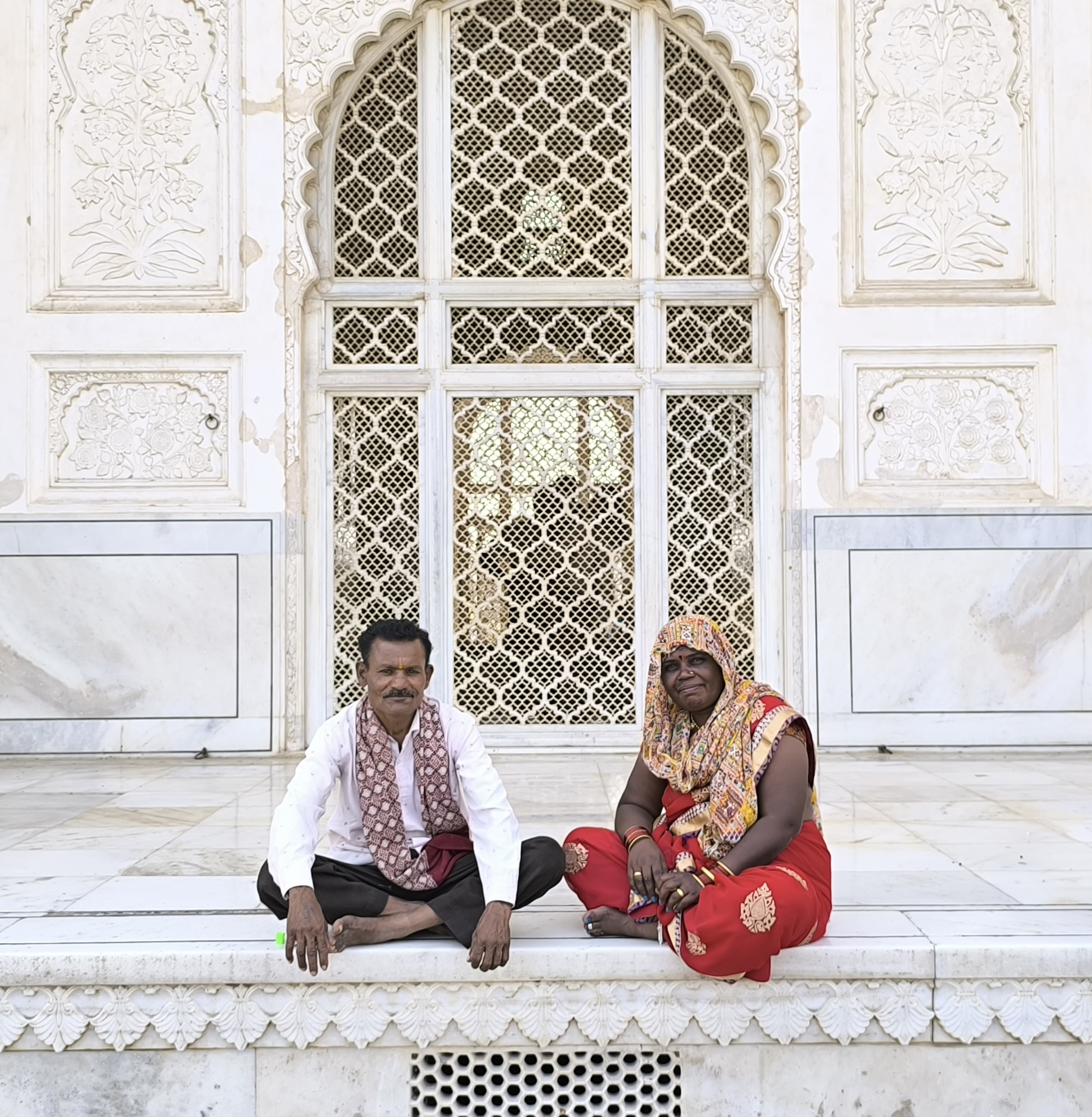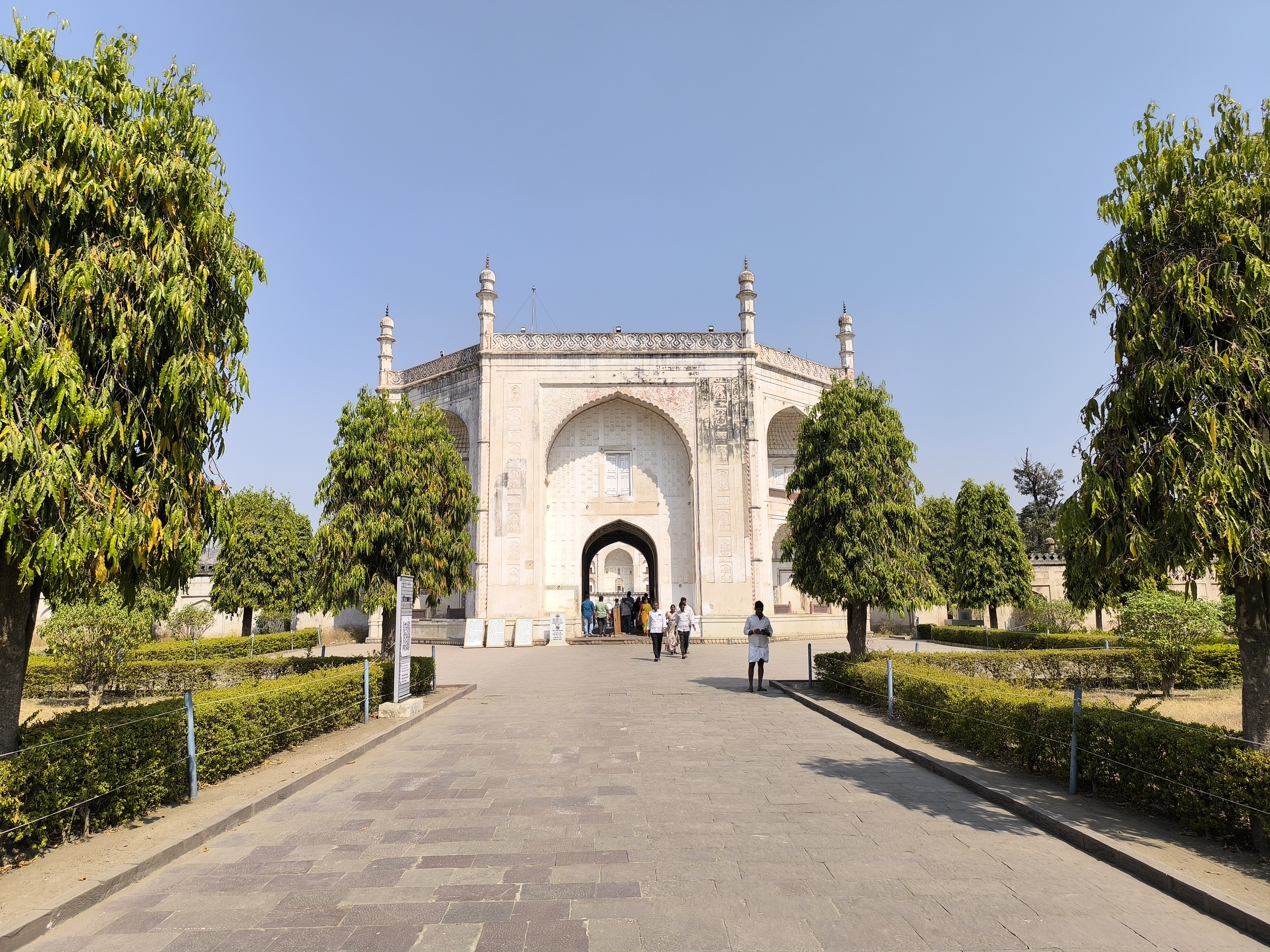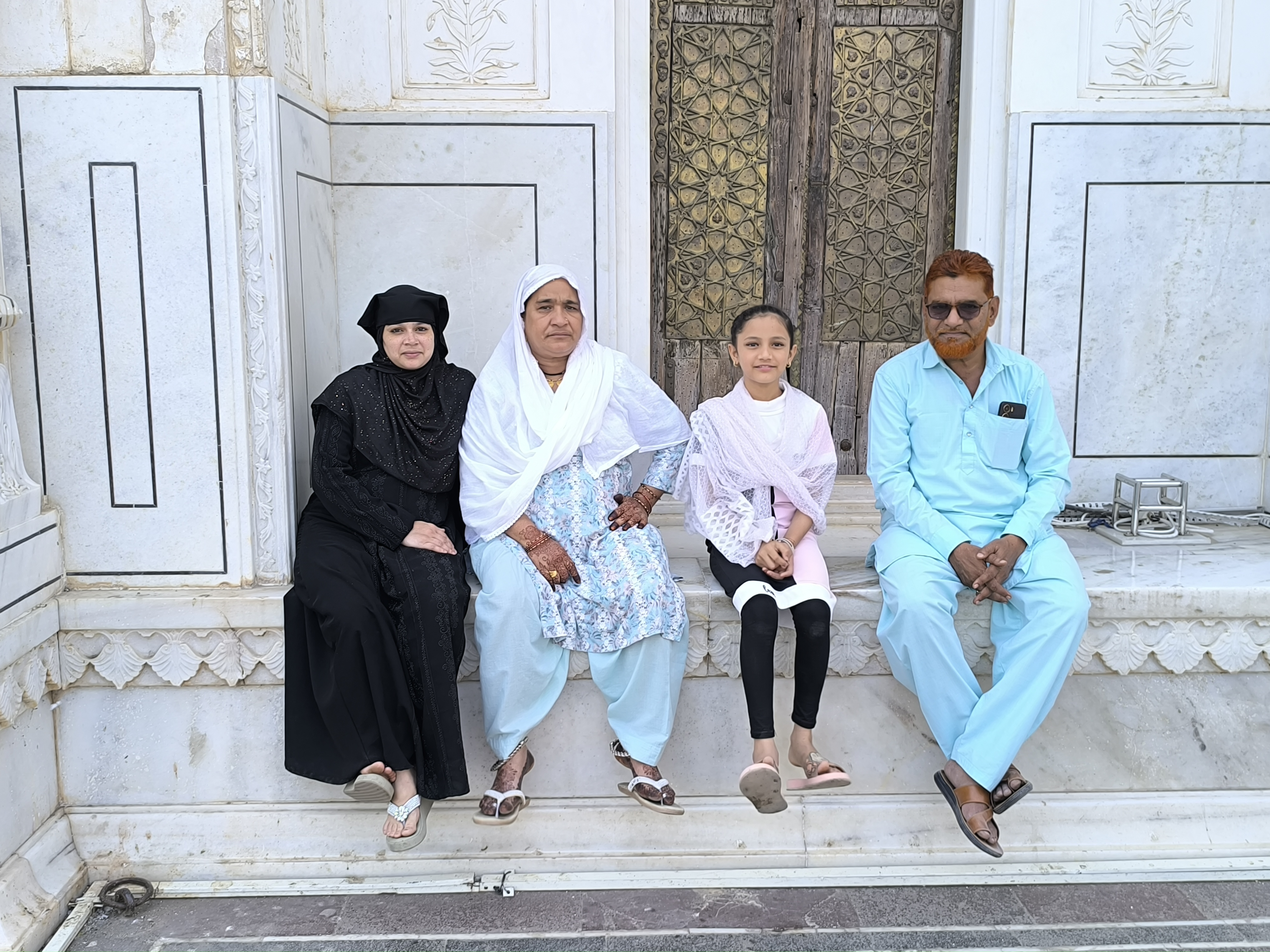 Auf unserer Weiterfahrt zur Bibi - Ka - Maqbara, dem Mausoleum, das Sultan Aurangzeb seiner Frau errichten ließ, stellten wir wieder einmal fest, dass keine der bisher besuchten indischen Städte miteinander vergleichbar sind. Alle sind charakteristisch anders. Auch wenn das Grabmal automatisch an das Taj Mahal erinnert, ist es doch völlig eigenständig in seiner perfekten Symmetrie. Im Zentrum eines von einer Mauer umgebenen Geviertes steht auf einer Plattform der prachtvolle Bau mit vier zierlichen Minaretten und sparsam aber wunderschön und zart ausgeführeten Ornamenten. Zu allen vier Seiten gibt es Becken mit Springbrunnen, welche sich im umgebenden Garten wiederholen und vom Eingang aus führt ein langes, schmales Becken ebenfalls mit Springbrunnen direkt zum Mausoleum. Ein wunderschöner, stiller und friedlicher Ort.