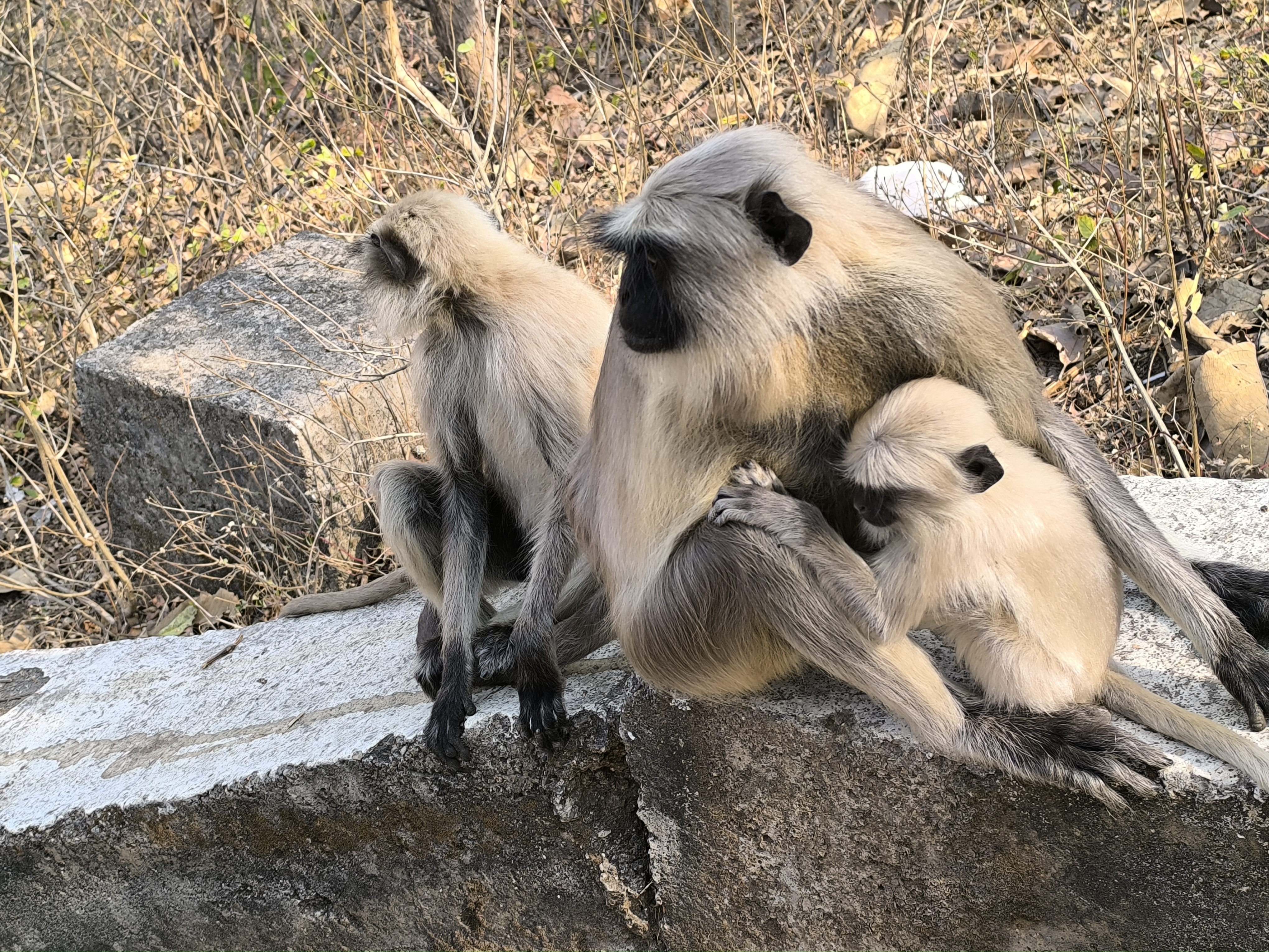 Eine Affenfamilie am Wegrand