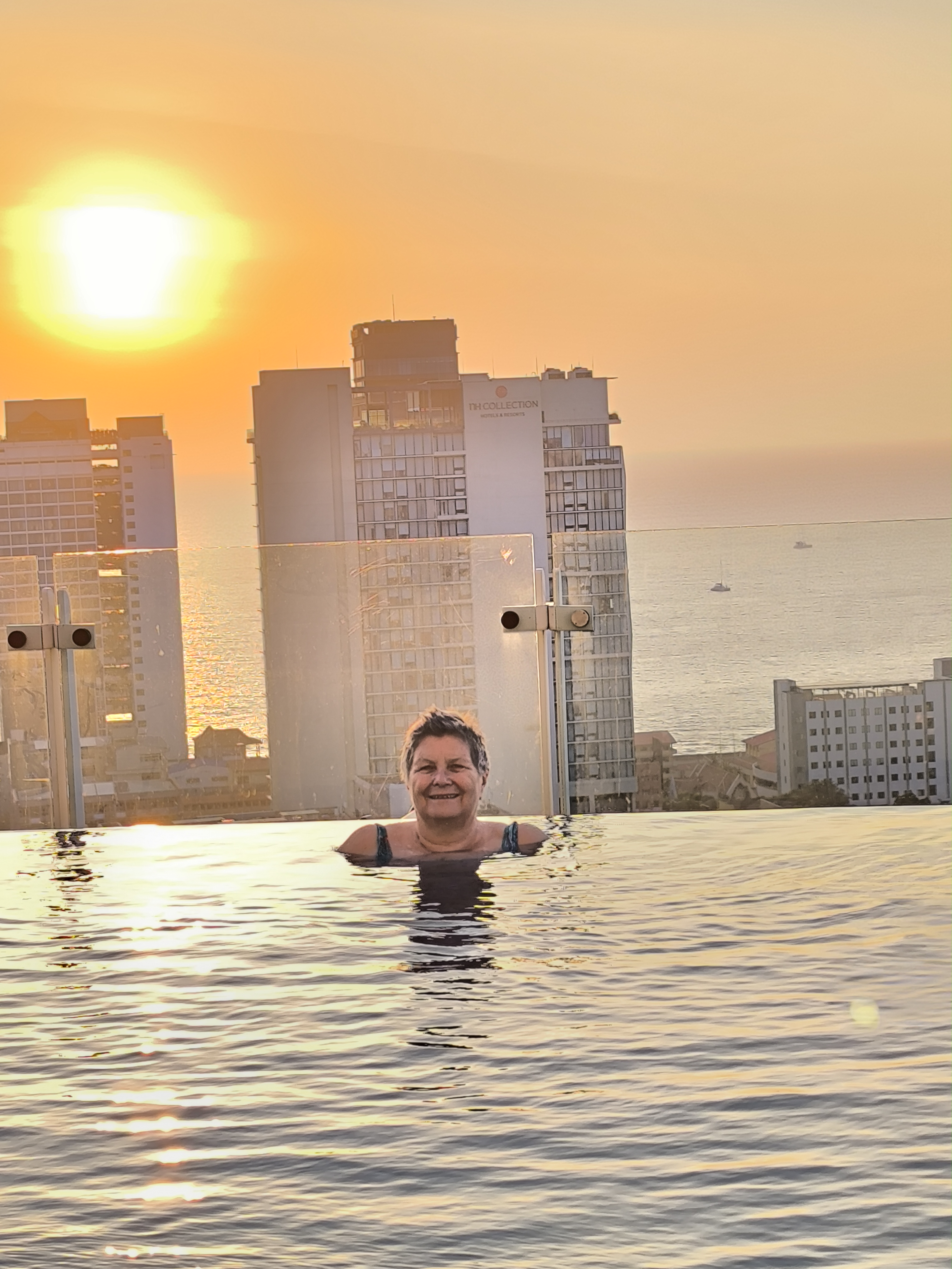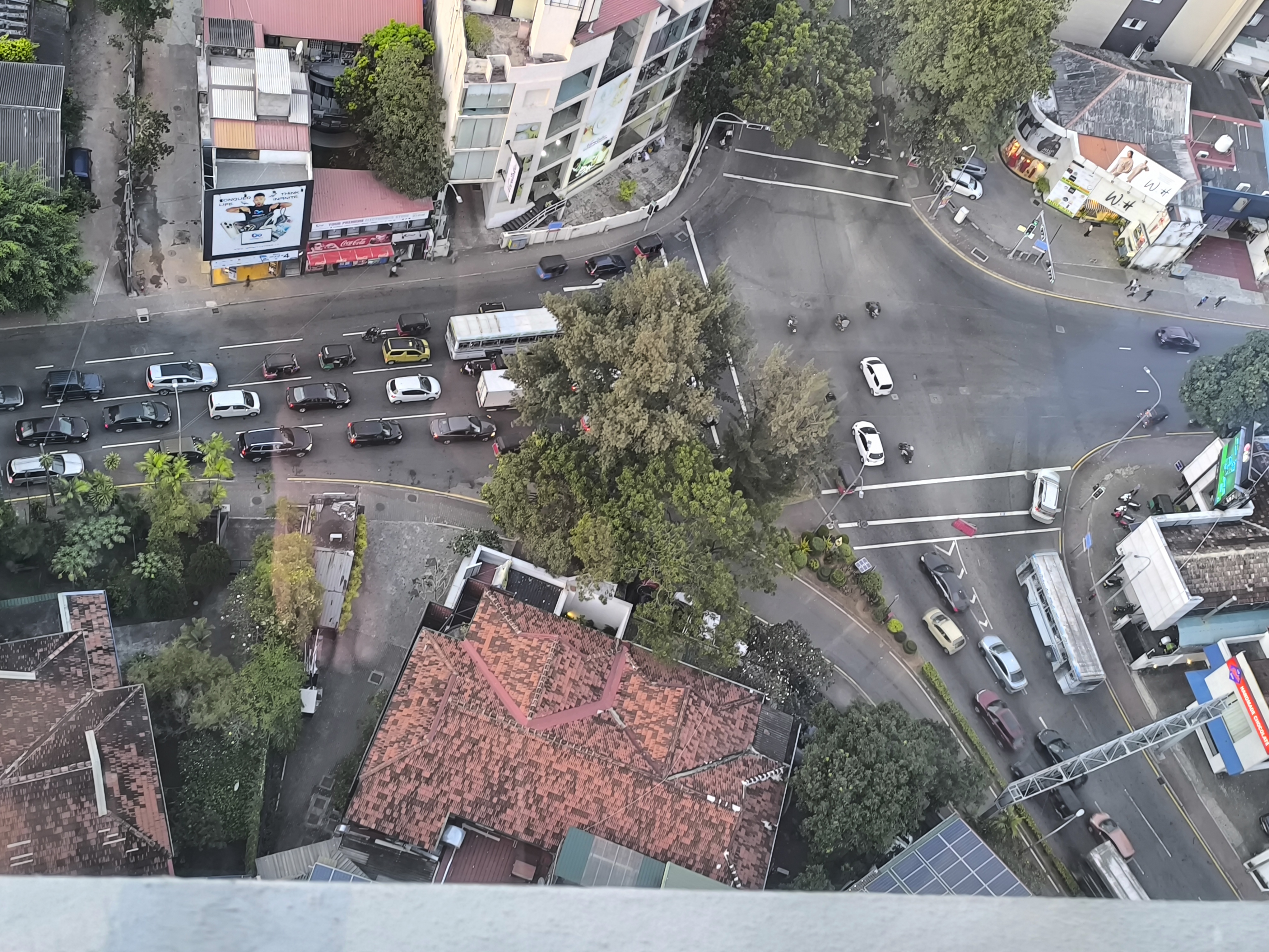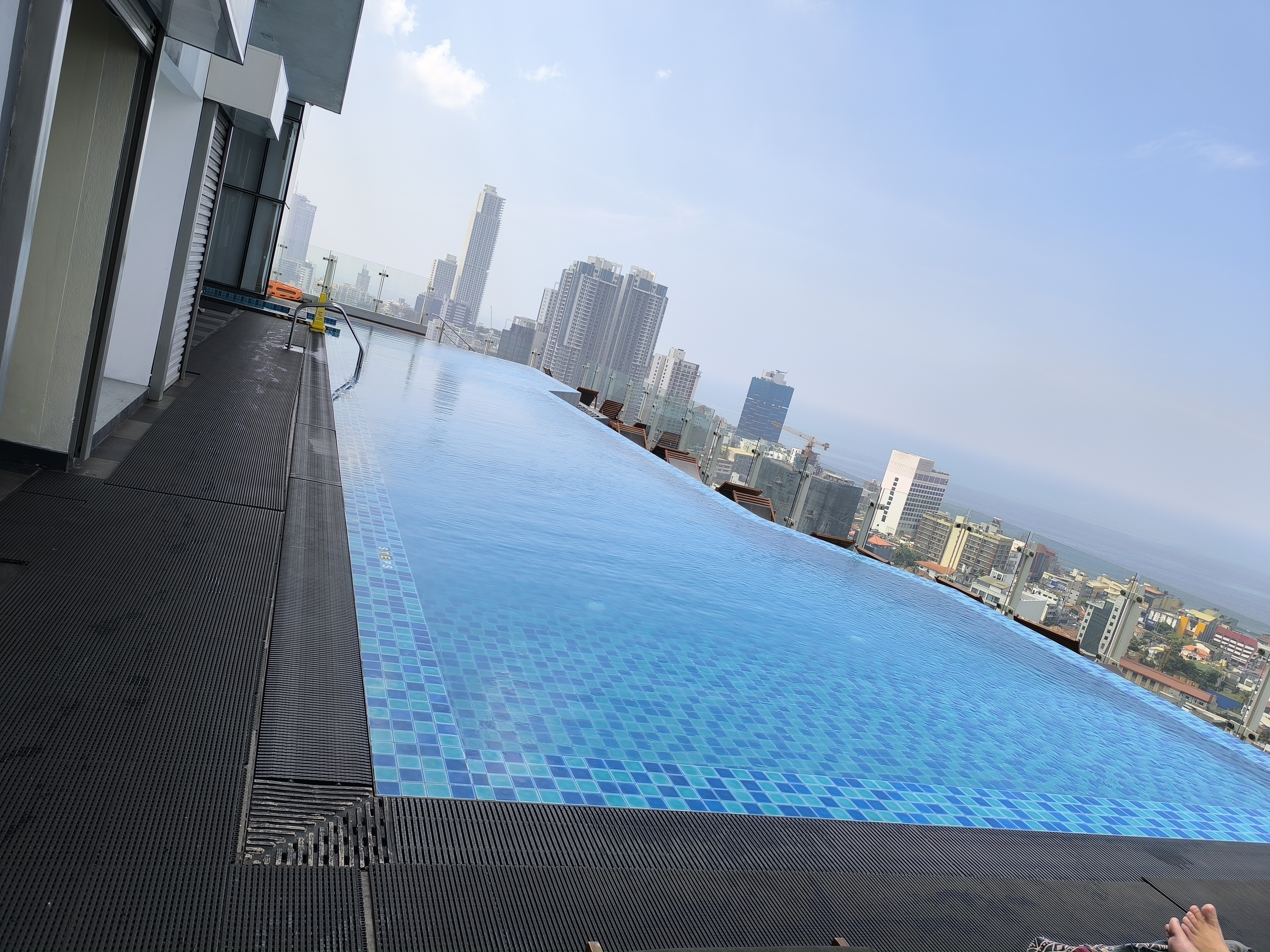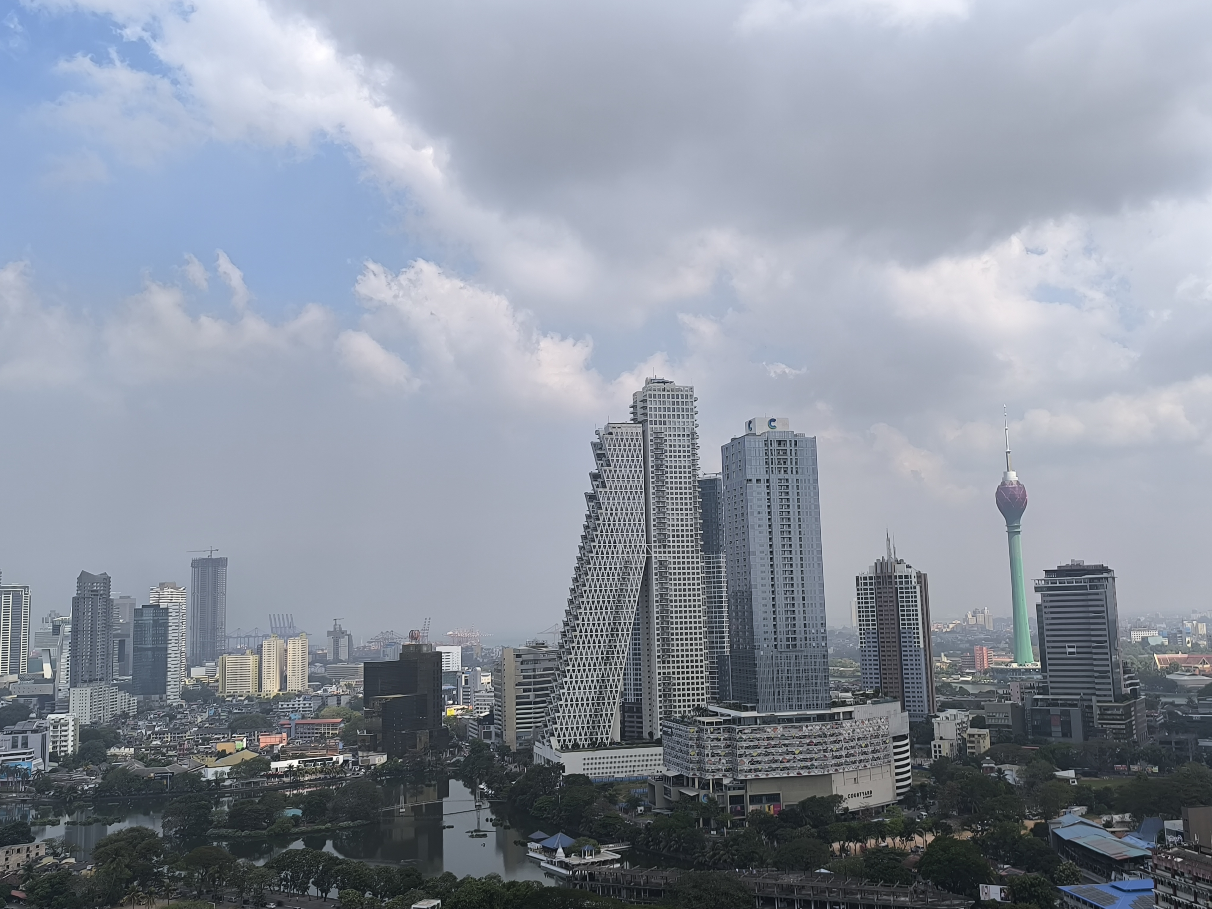 Frühes Einchecken in unser Hotel Cinnamon Red um 1:00 . Daher ist unser erster Tag in Colombo dem Ankommen und der Entspannung gewidmet. Das bedeutet Liegestuhl auf der Dachterrasse im 26. Stock direkt am Pool mit herrlich warmem Wasser. Hier weht auch ein feiner Wind, der die Temperatur erträglich macht und wir können die Aussicht genießen. Zwei schöne Parks liegen gleich in der Nähe, das Meer ist in Sichtweite, vor uns breitet sich die Kulisse der modernen Stadt aus.