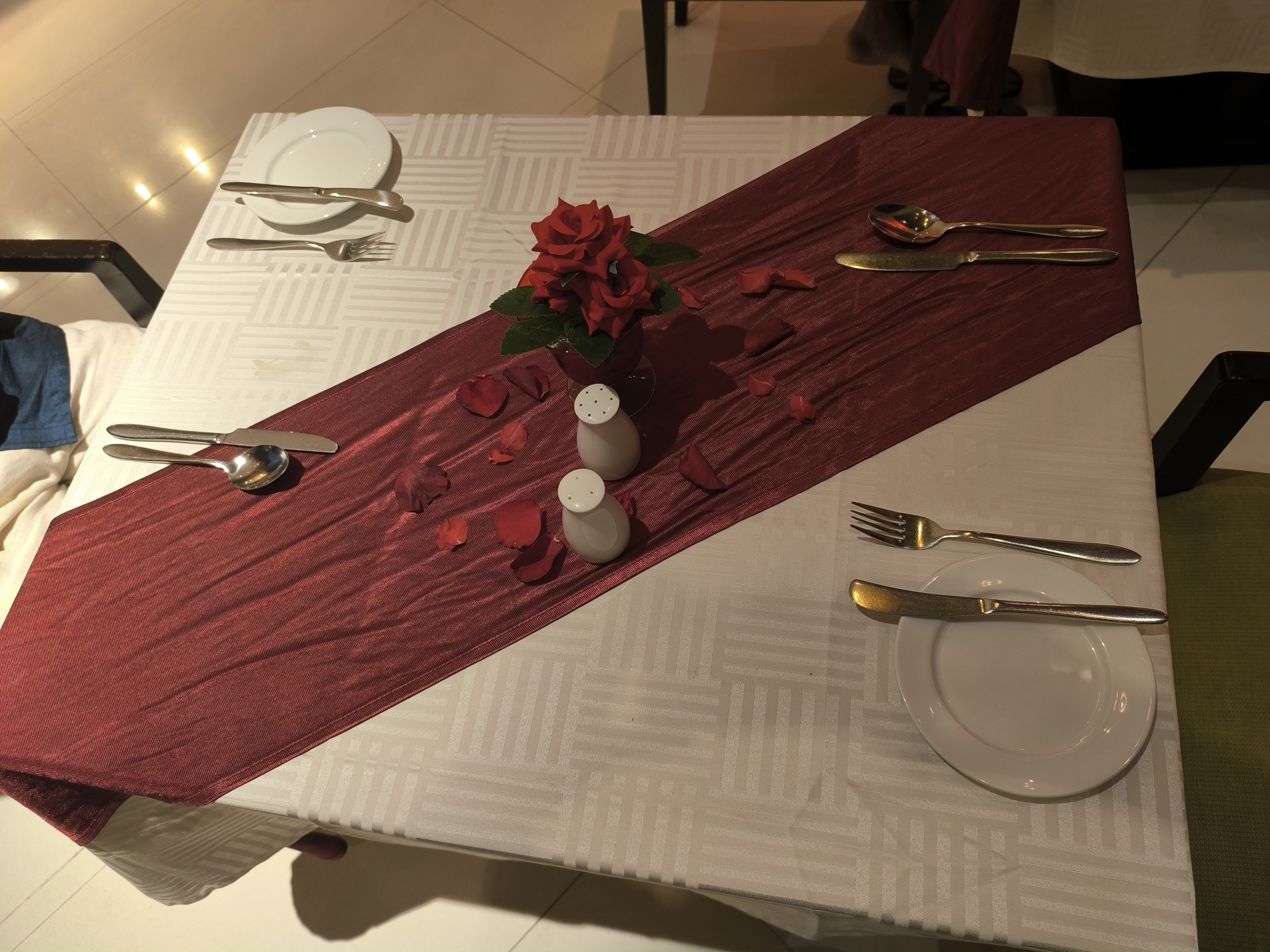 Denkste! Auch hier wurde der Valentinstag gefeiert. Überall waren rote Rosen im Speisesaal. Der festlich gedeckte Speisesaal war ausgebucht und wir mussten bis 9:30 pm warten. Alle Gäste waren dem Anlass entsprechend gekleidet - vielen junge Frauen sahen in ihren oftmals roten Kleidern sehr hübsch aus. Auch das Essen war köstlich, die musikalische Begleitung durch einen Sänger und Keyboard sehr angenehm untermalend und trotz des vollen Saales angenehm gedämpfte Lautstärke. Wir genossen den Abend sehr.