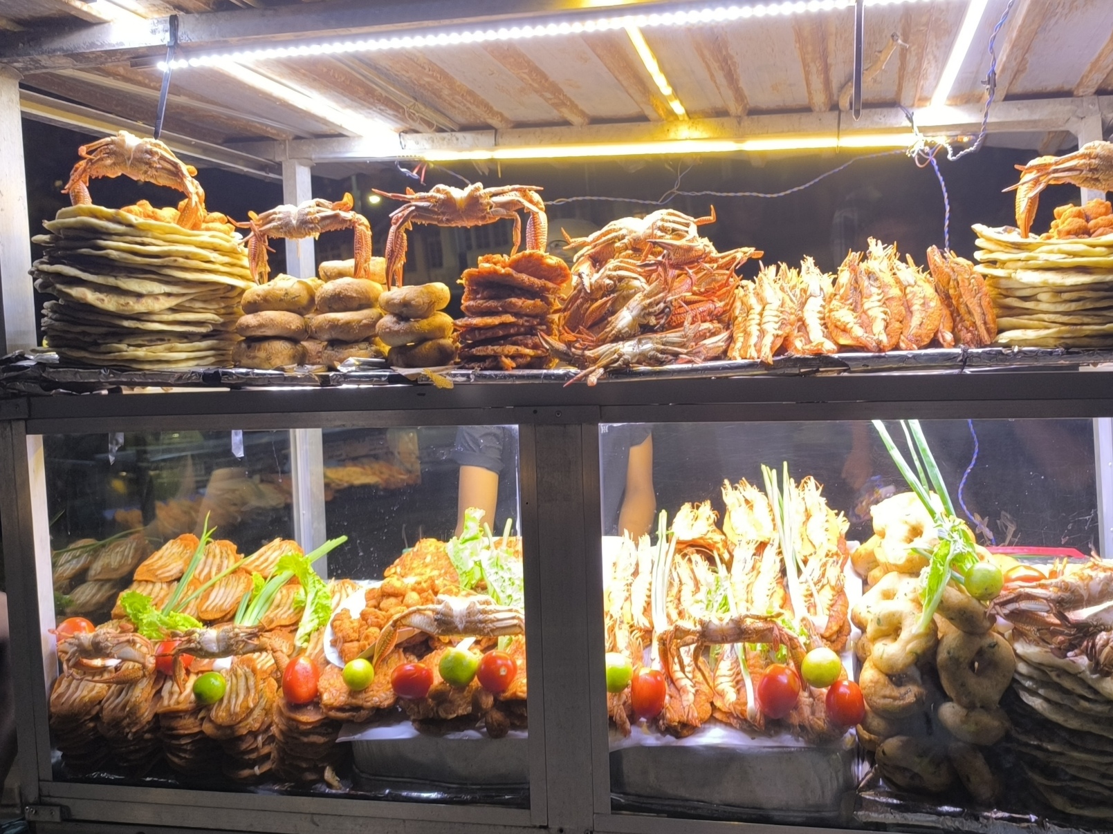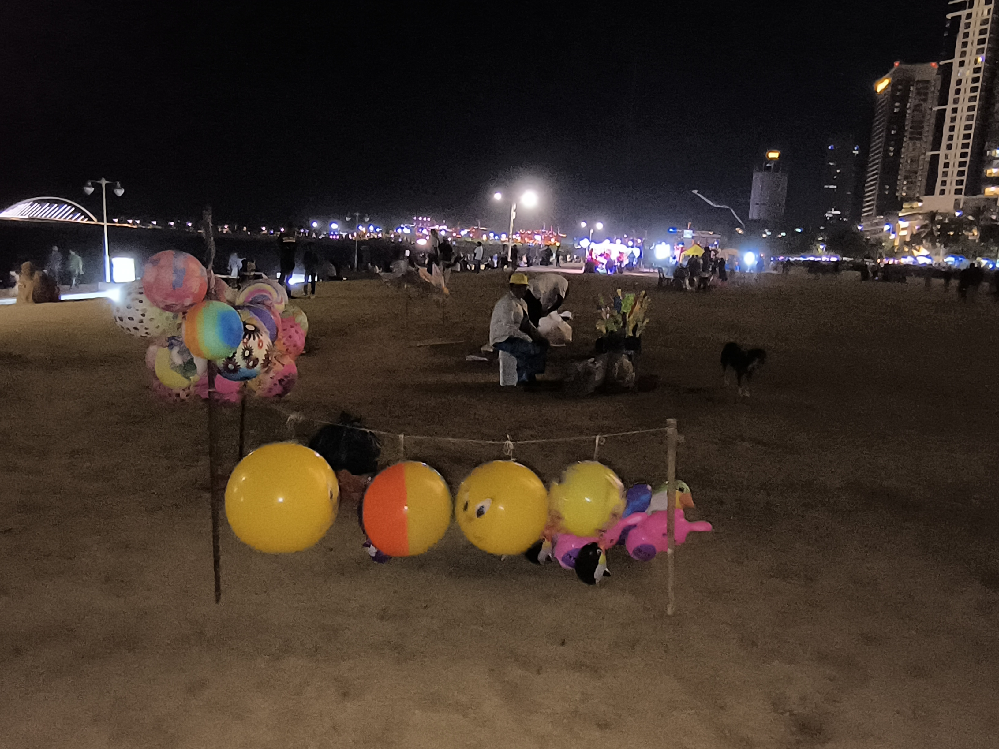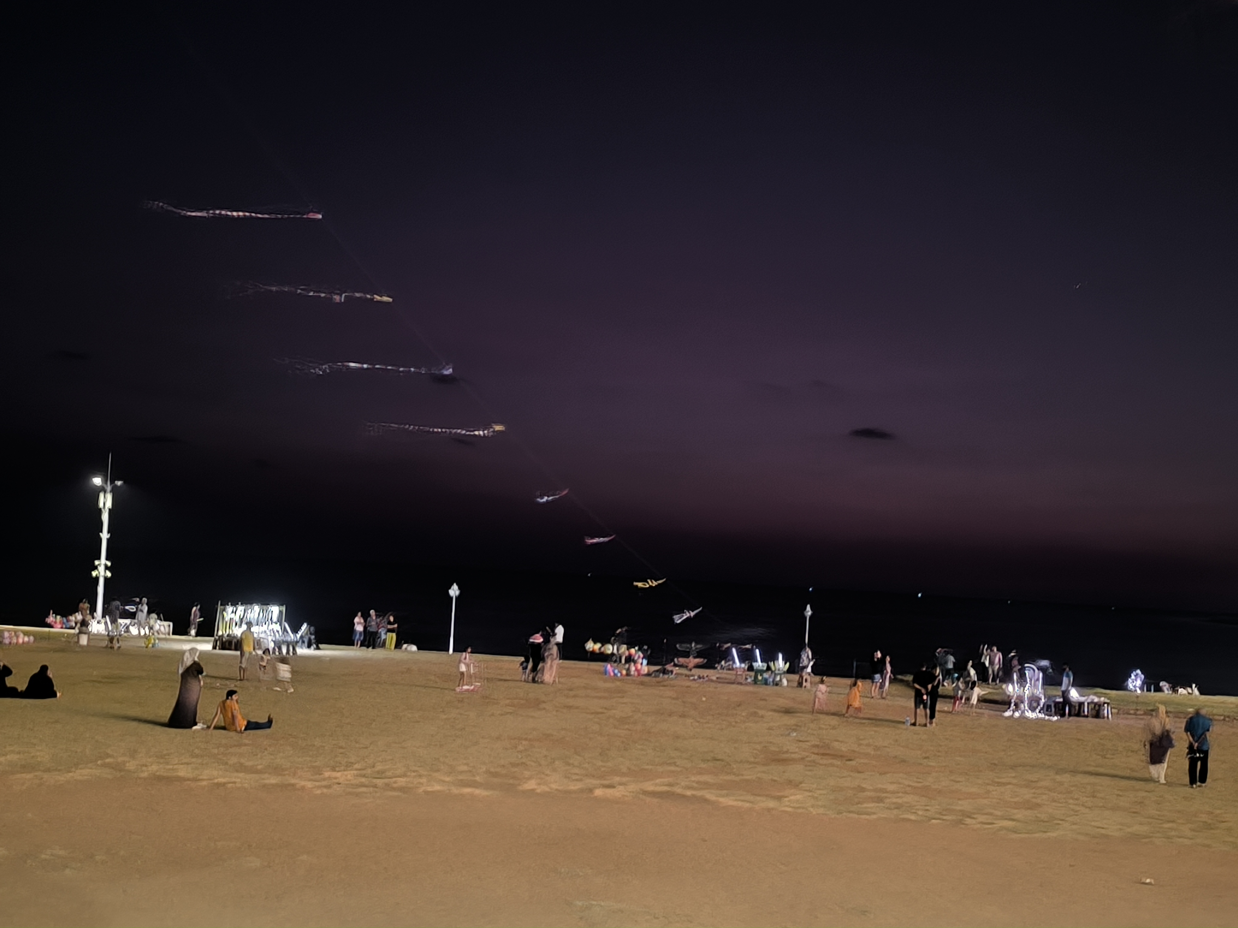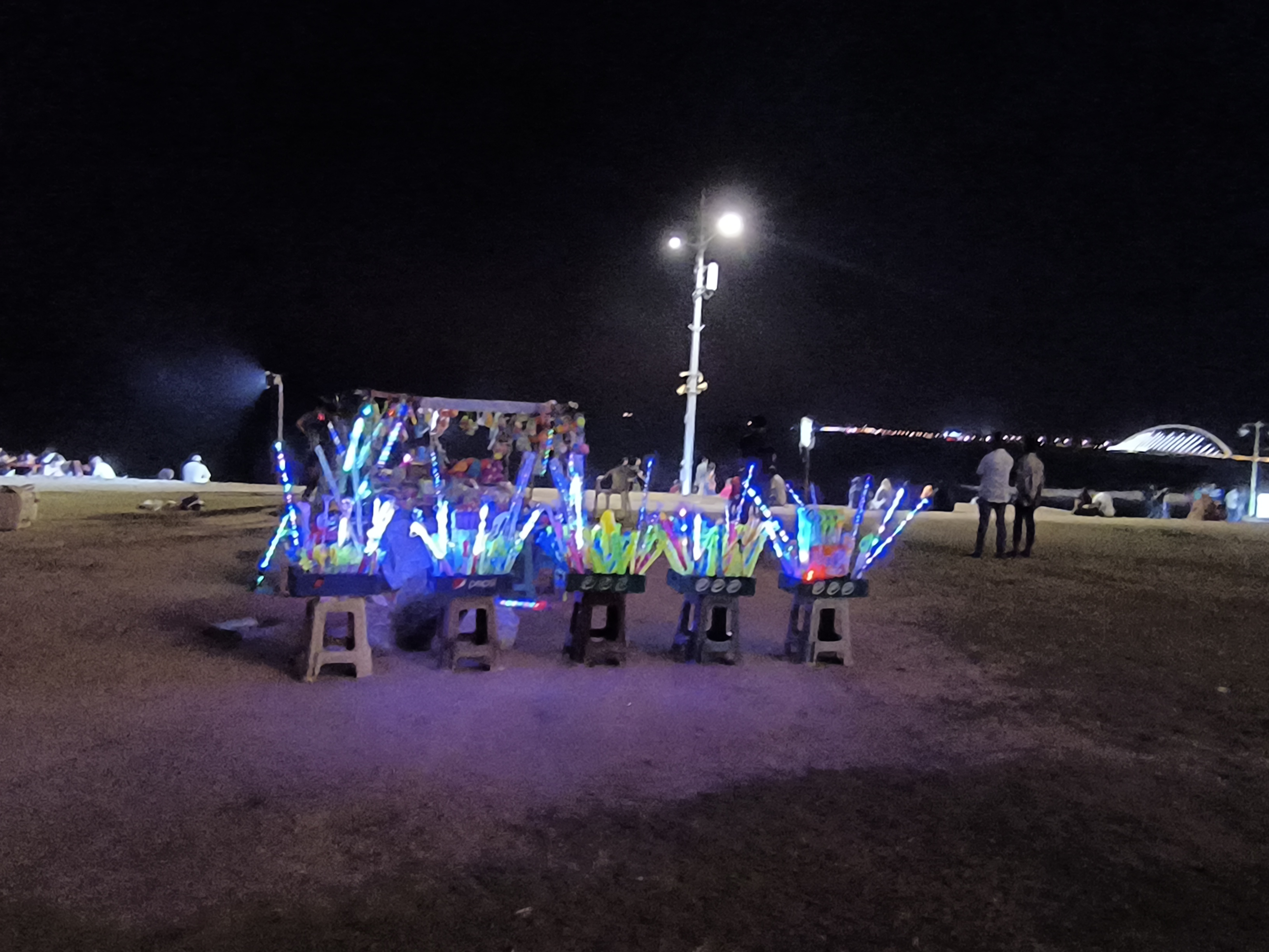 Inzwischen dunkelte es und wir spazierten Richtung Meer, was in Colombo nicht unbedingt auch Strand bedeutet. Weiter Richtung Altstadt wandernd, trafen wir auf einen gut 2 km langen Grünstreifen, von den Engländern für Pferdesport (wär doch was für Kickl) und Cricket angelegt. Jetzt treffen sich hier abends die Menschen, spazieren, plaudern, spielen und lassen Drachen steigen. Zwischen der Skyline Colombos und dem Meer gibt es dann viele kleine Standeln mit Snacks, Süßigkeiten, Getränken und auch Spielzeug für die Kinder, die sich auf dem Grün so richtig austoben können.