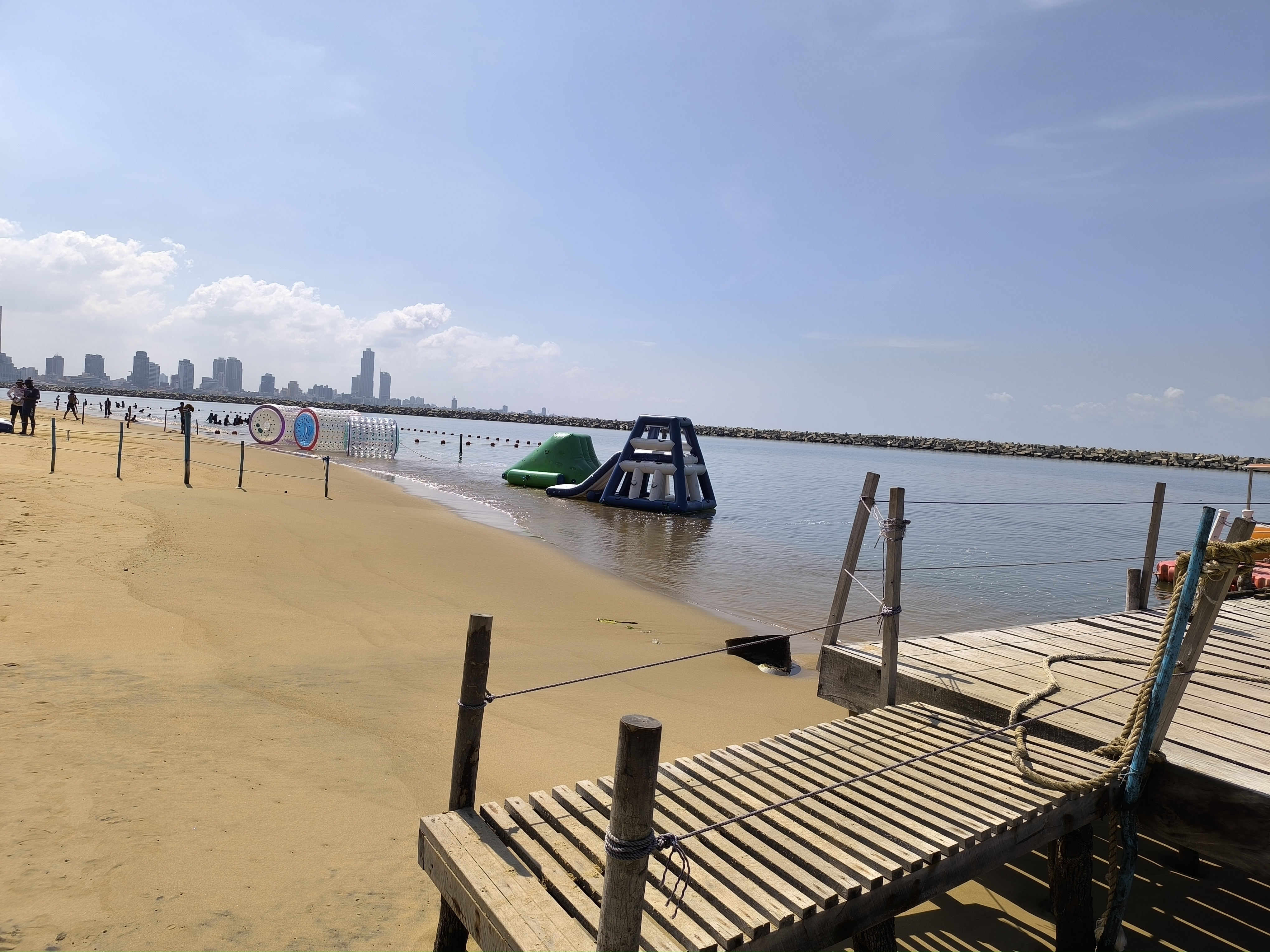 Letztlich langten wir auf einer dem Hafen vorgelagerten, künstlich aufgeschütteten Halbinsel an, auf der in den nächsten Jahren Colombos Handels - und Freizeitzentrum entstehen soll, wo wir noch gemütlich in einem Lokal sitzend den Leuten zusahen.