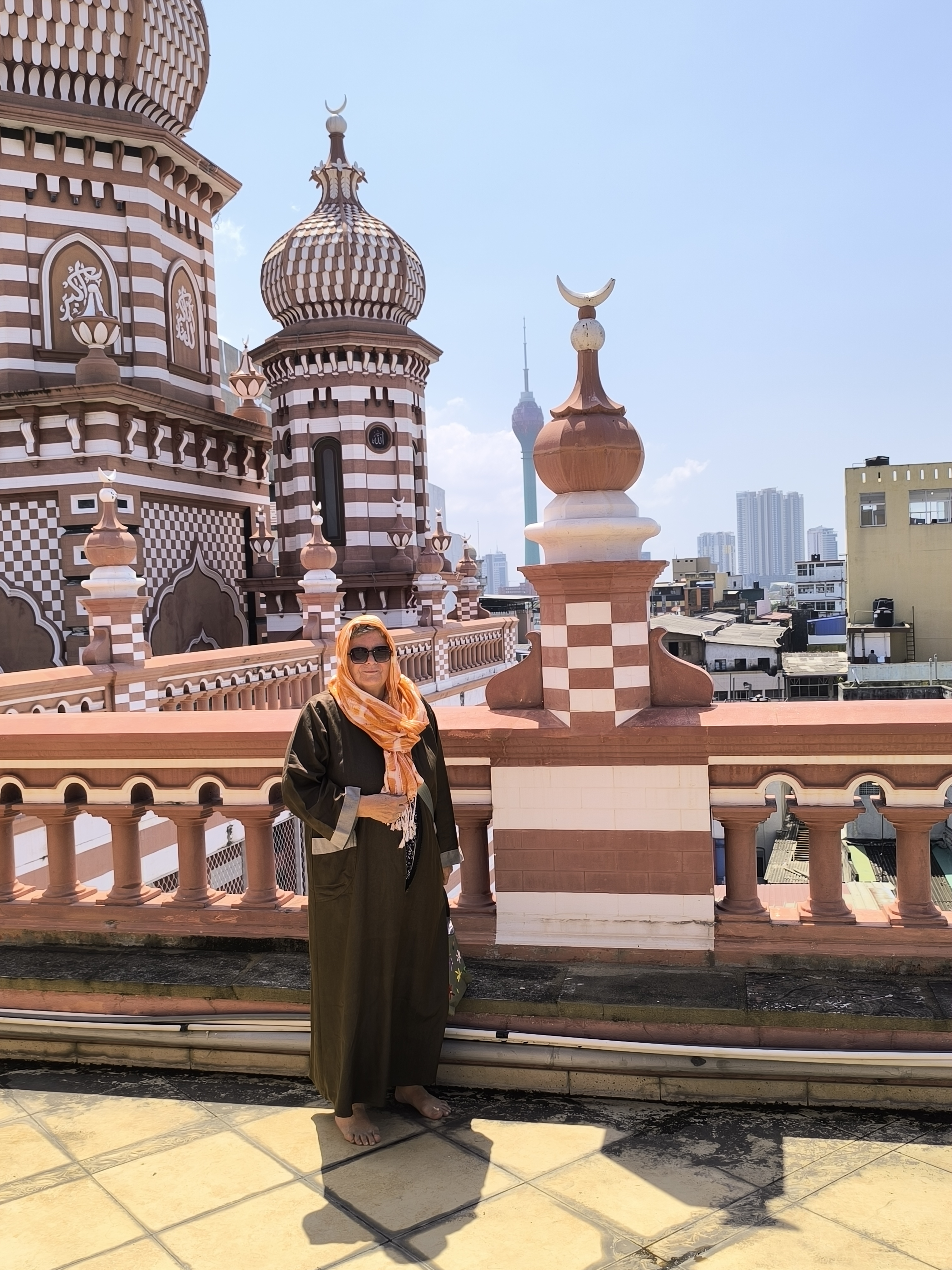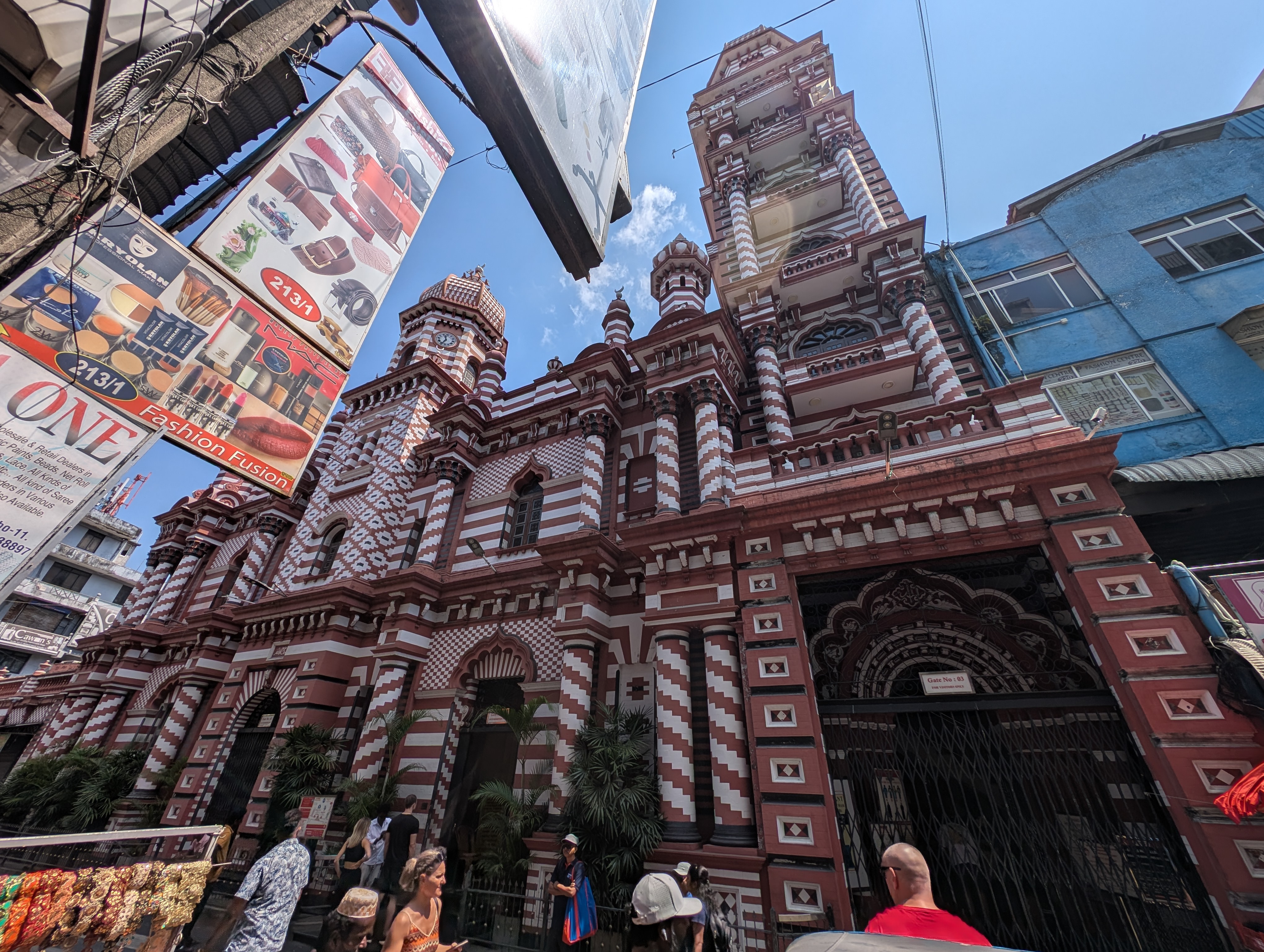 Mit ihm erlebten wir dann nicht nur ein sehr durchmischtes Colombo zwischen Hochhäusern und alten Vierteln, sondern er ermöglichte eine Führung durch eine wirklich schöne mehrstöckige Moschee. Angelika war nicht gerade glücklich, Frauen mussten ein langes Kleid mit Kapuze tragen, was bei 35 Grad schon sehr mühsam war. Auch beim Stiegensteigen musste Frau darauf achten, nicht auf das lange Kleid zu treten. Männer trugen bequeme Hosen und ein lockeres Hemd.
