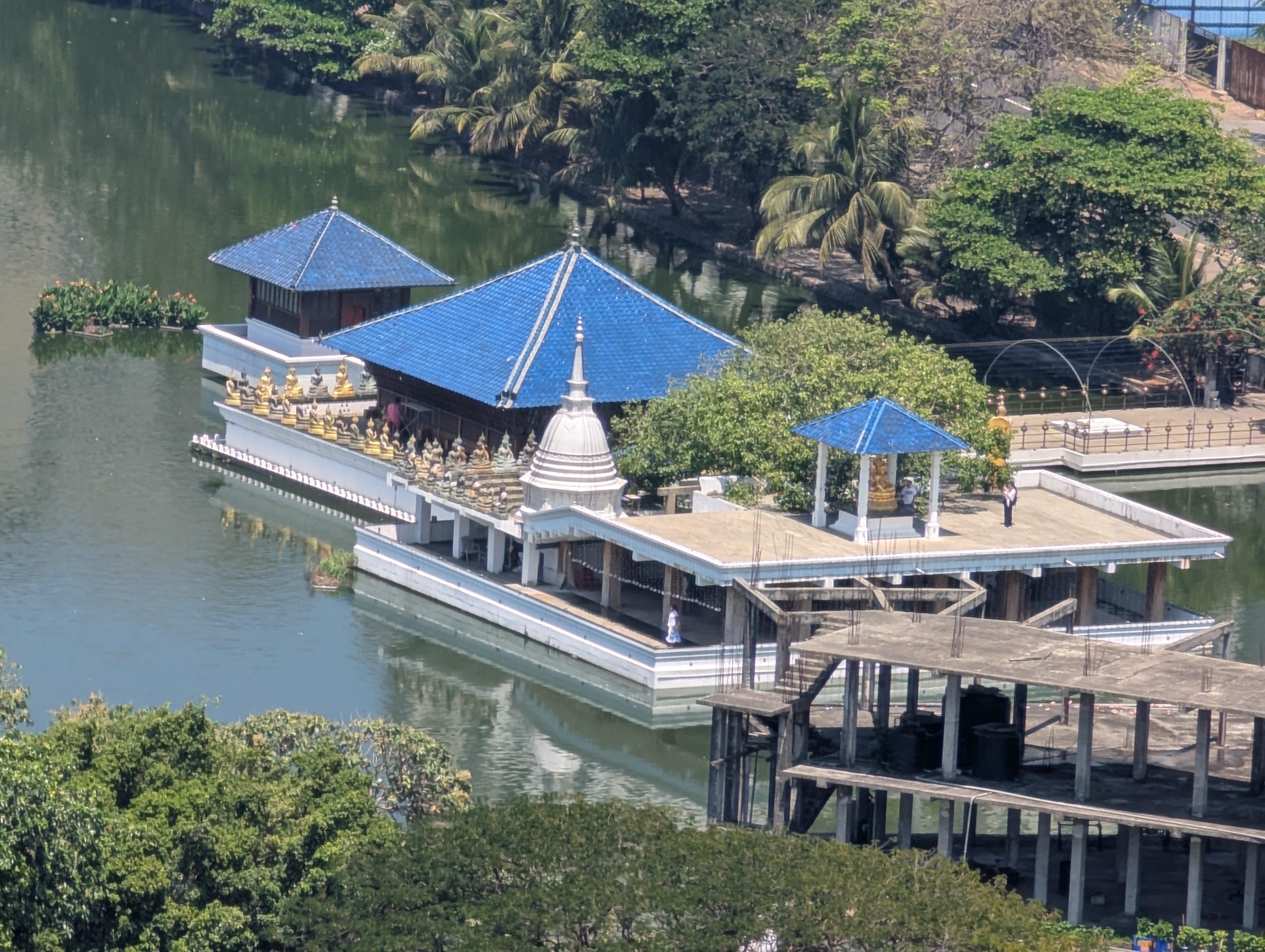 Noch einen Zwischenstopp in einem modernen buddhistischen Tempel, erbaut von Sri Lankas Stararchitekten Geoffrey Bawa, der wunderschön inmitten eines kleinen Sees steht. Damit war's genug für heute.