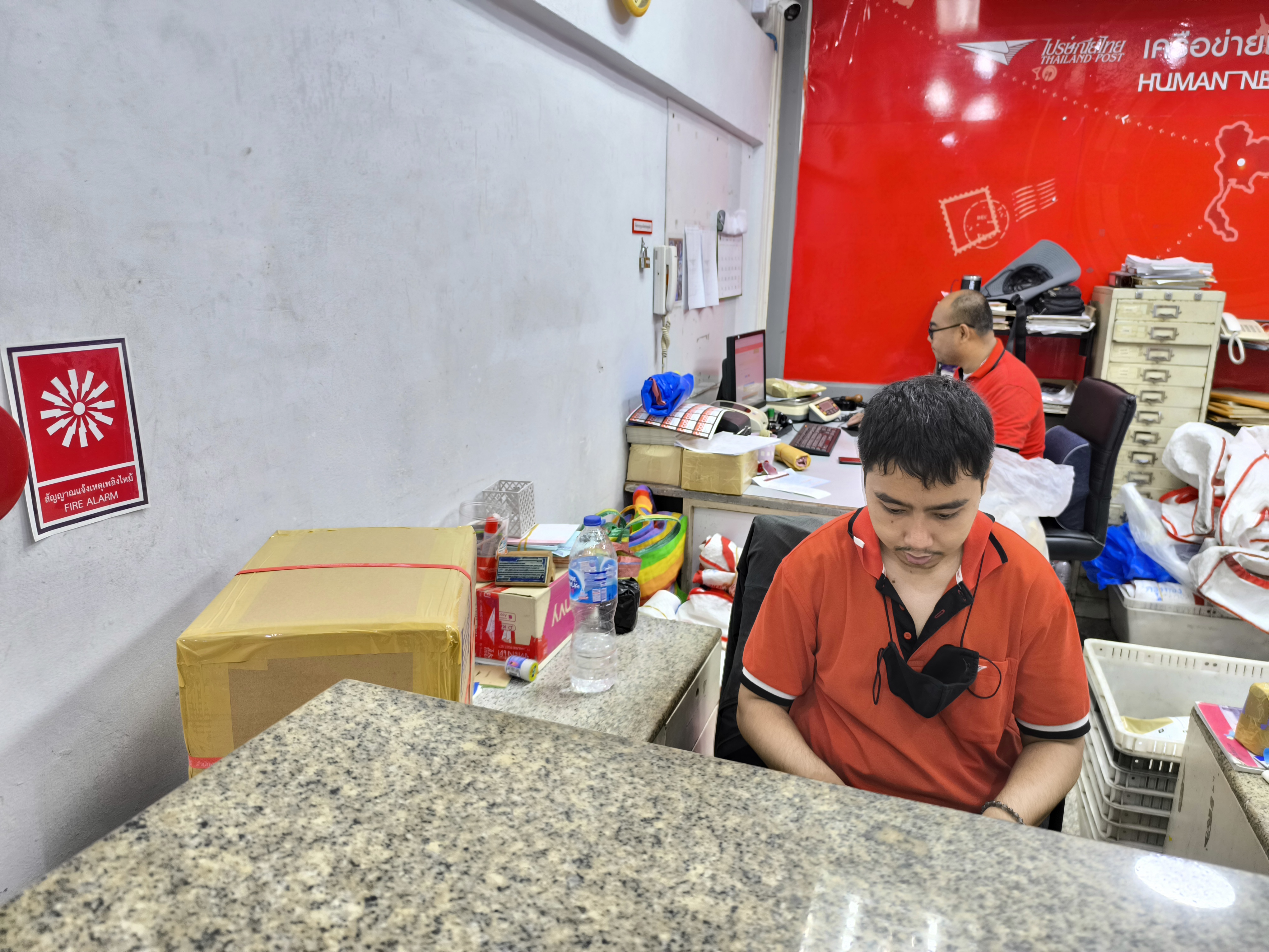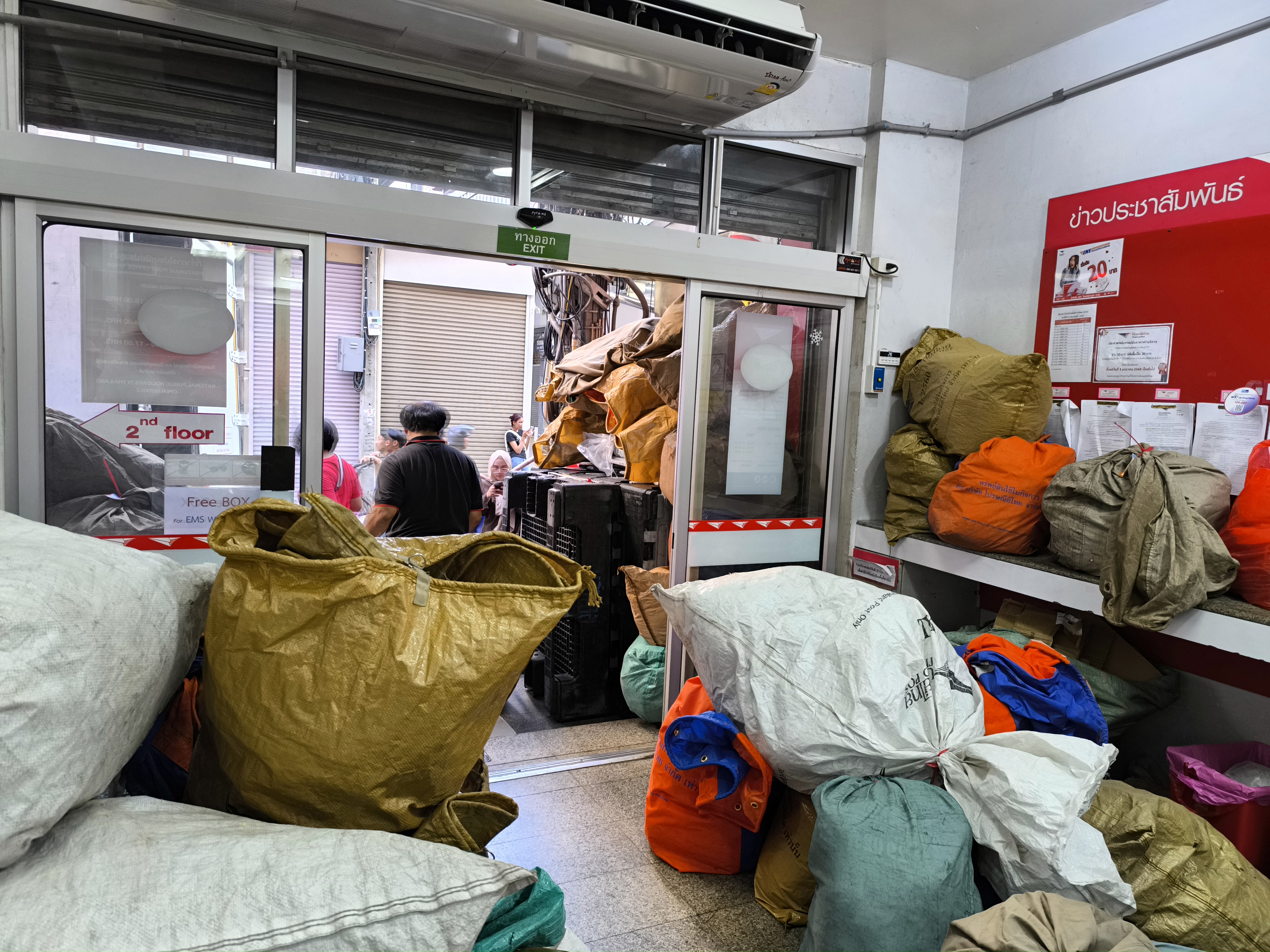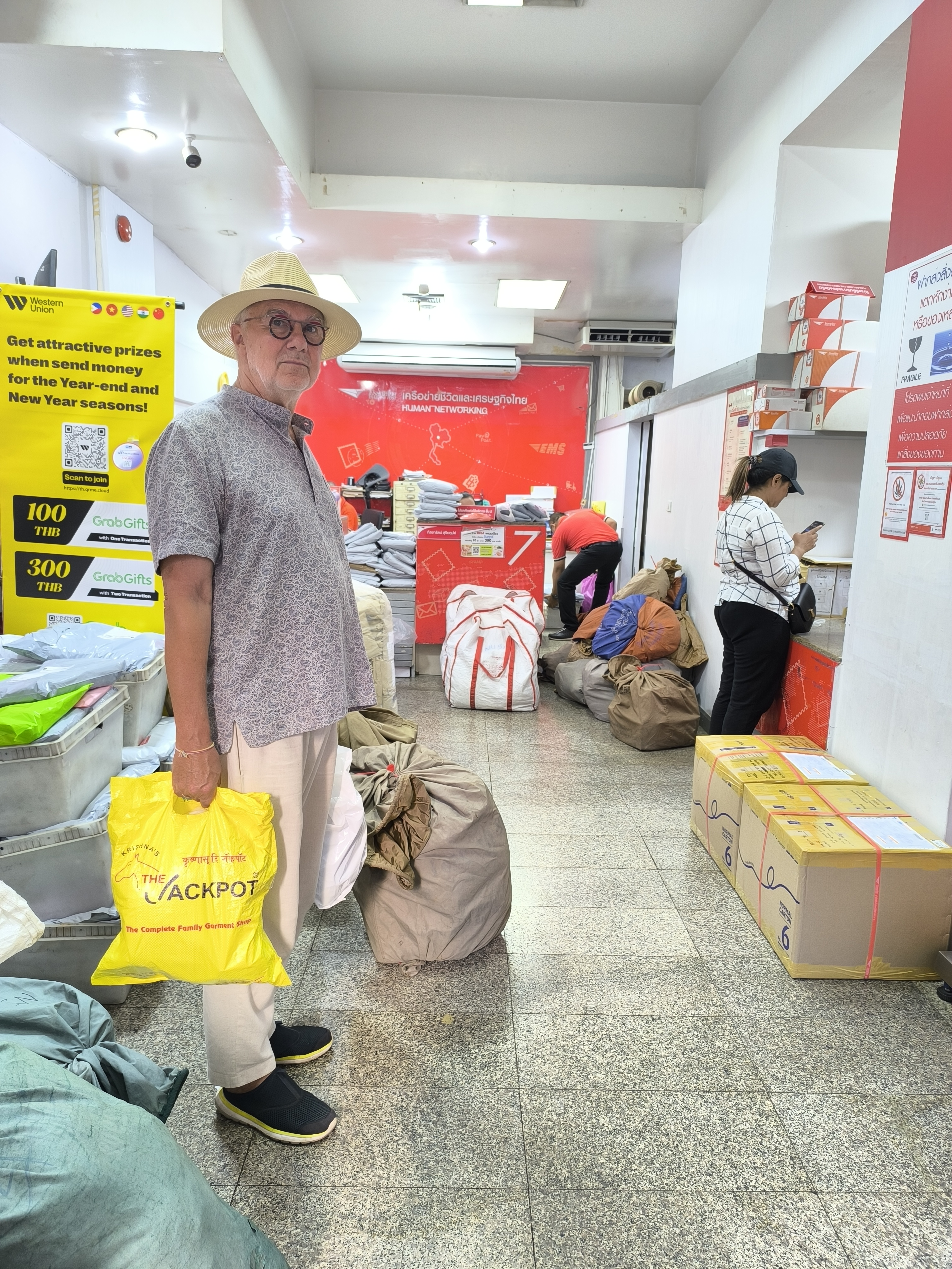 Diese erwies sich dann aber als äußerst effizient und, vor allem für uns von Bedeutung, unglaublich hilfsbereit. Eine Schachtel in geeigneter Größe wurde gefaltet, unser Material eingepackt, von einem Mitarbeiter fachgerecht verklebt und dann noch mit Kabelbindern gesichert. Das, obwohl die Angestellten alle Hände voll zu tun hatten. Wir haben nur gestaunt, wie rasch und eingespielt alles von sich ging.