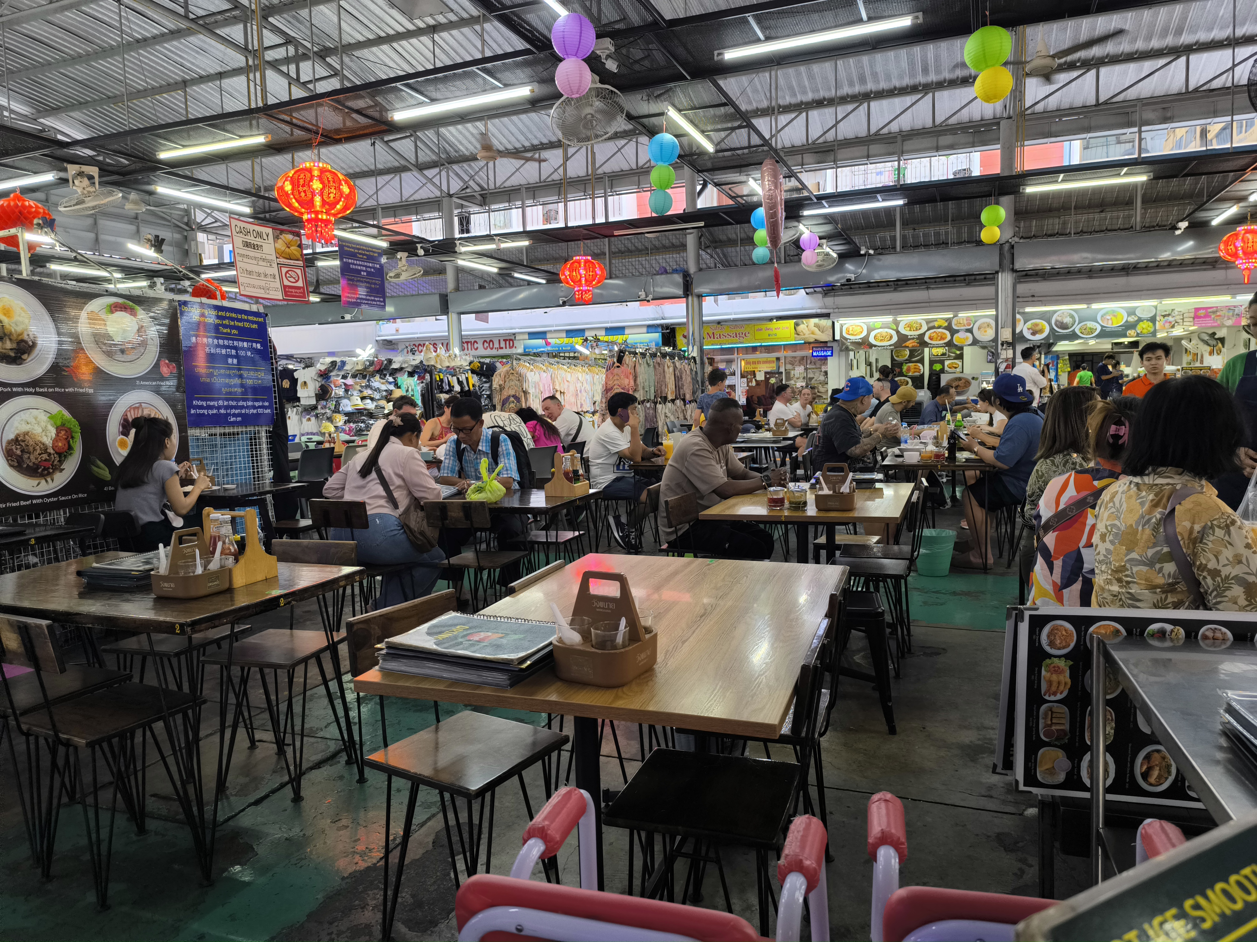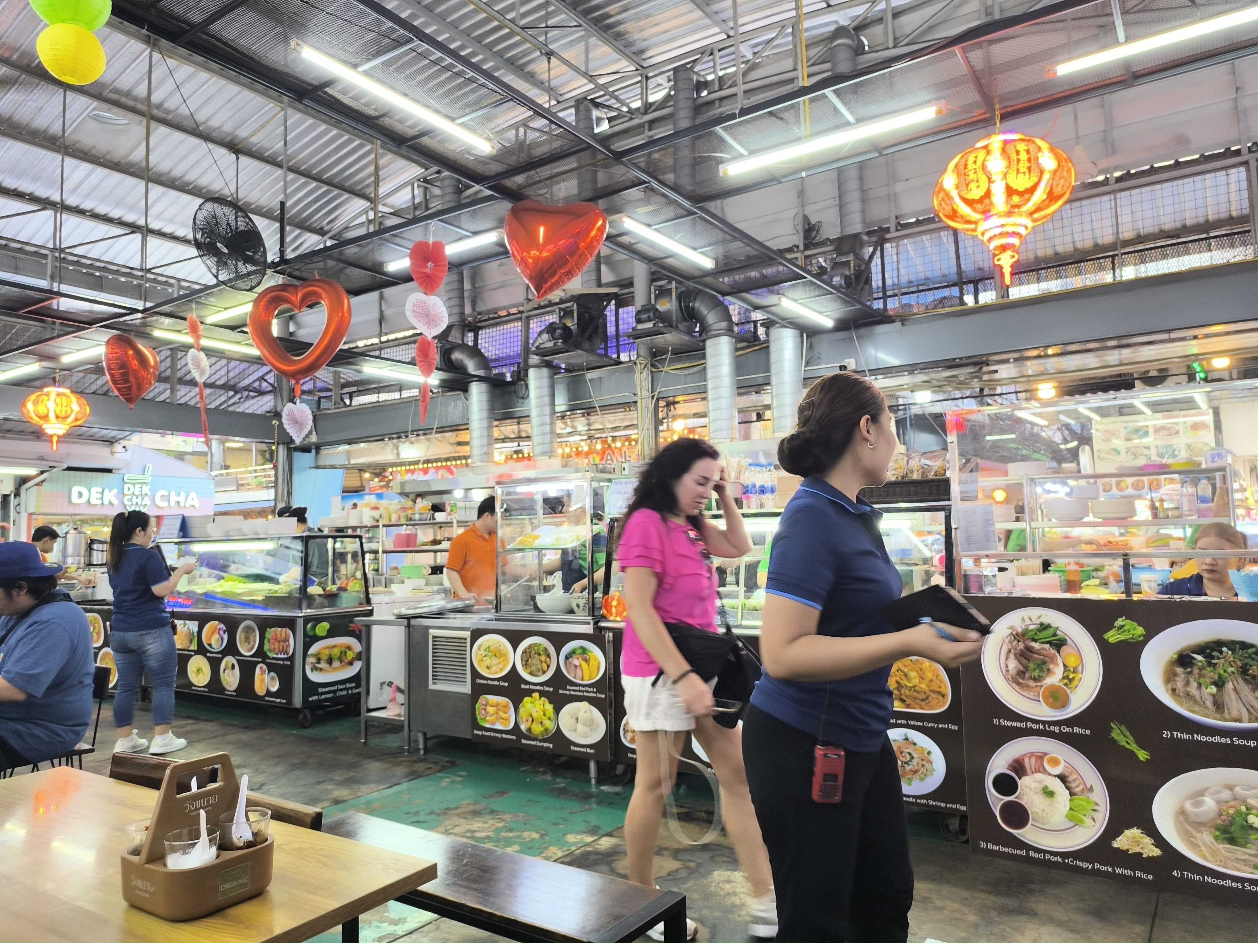 Anschließend gab es Street Food in einer Einkaufshalle, das hat unglaublich gut geschmeckt und im Gegensatz zu Indien und Sri Lanka sind die Portionen für eine Person ausgelegt. Morgen gerne wieder. Wir wissen auch noch, was wir gegessen haben - aus einer ganz viele Seiten umfassenden Speisekarte haben wir dann die Nummer 86 und 94 gewählt.