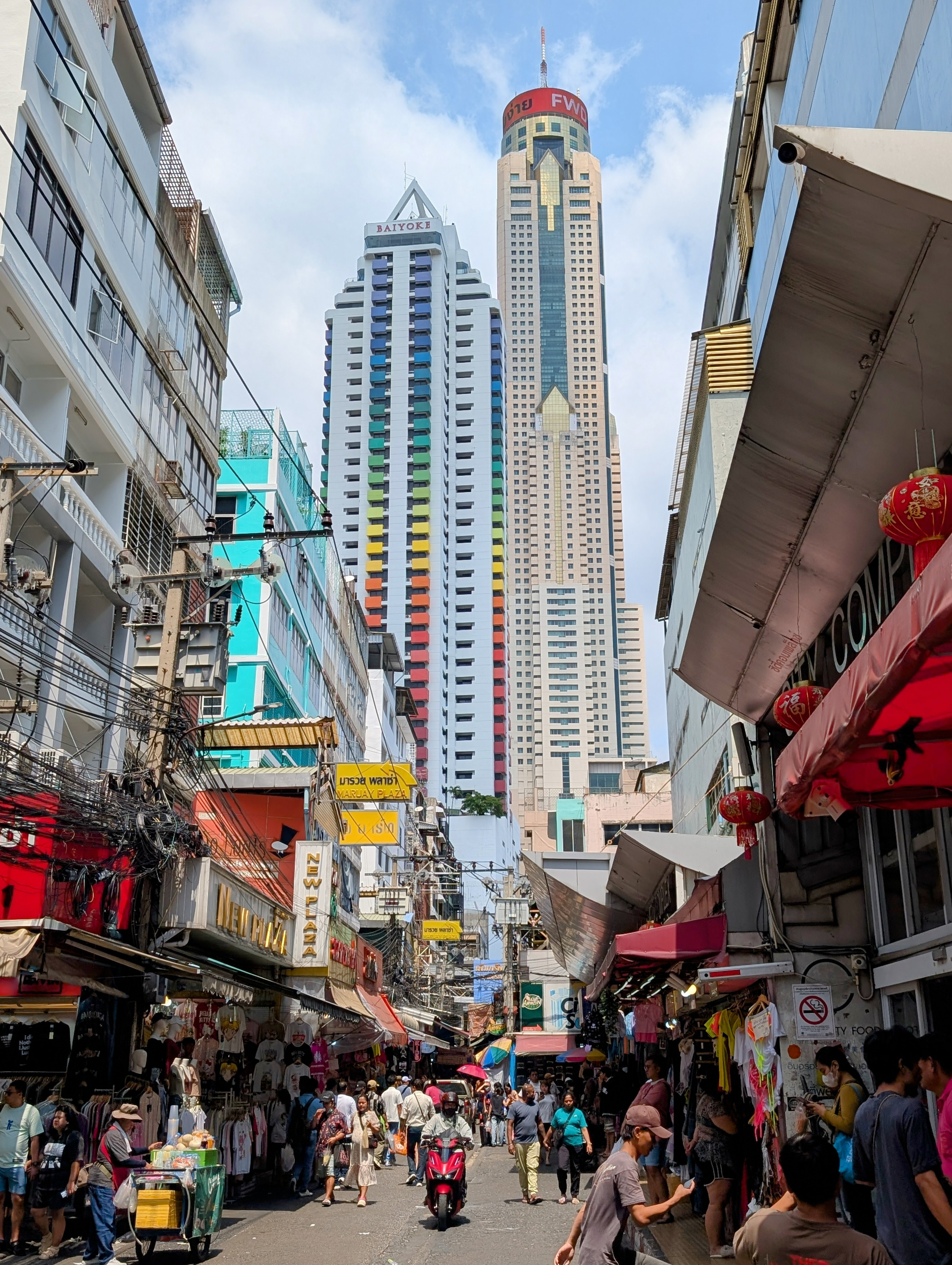 Jeden Tag entdecken wir aus dieser Höhe etwas Neues, zuvor nicht Gesehenes, Farbtupfer in der Stadt, Tempelanlagen, Pools auf den verschiedenen Hotels, architektonische Gestaltungen, nächtliche Beleuchtungsvariationen. Wir sind echt froh darüber, dass wir hier gebucht haben. Und das Personal ist von solcher Freundlichkeit und Hilfsbereitschaft, dass es auch nicht peinlich ist, wenn man sich mal verlaufen sollte. Der Pool im 20. Stock ist noch eine hübsche Draufgabe.