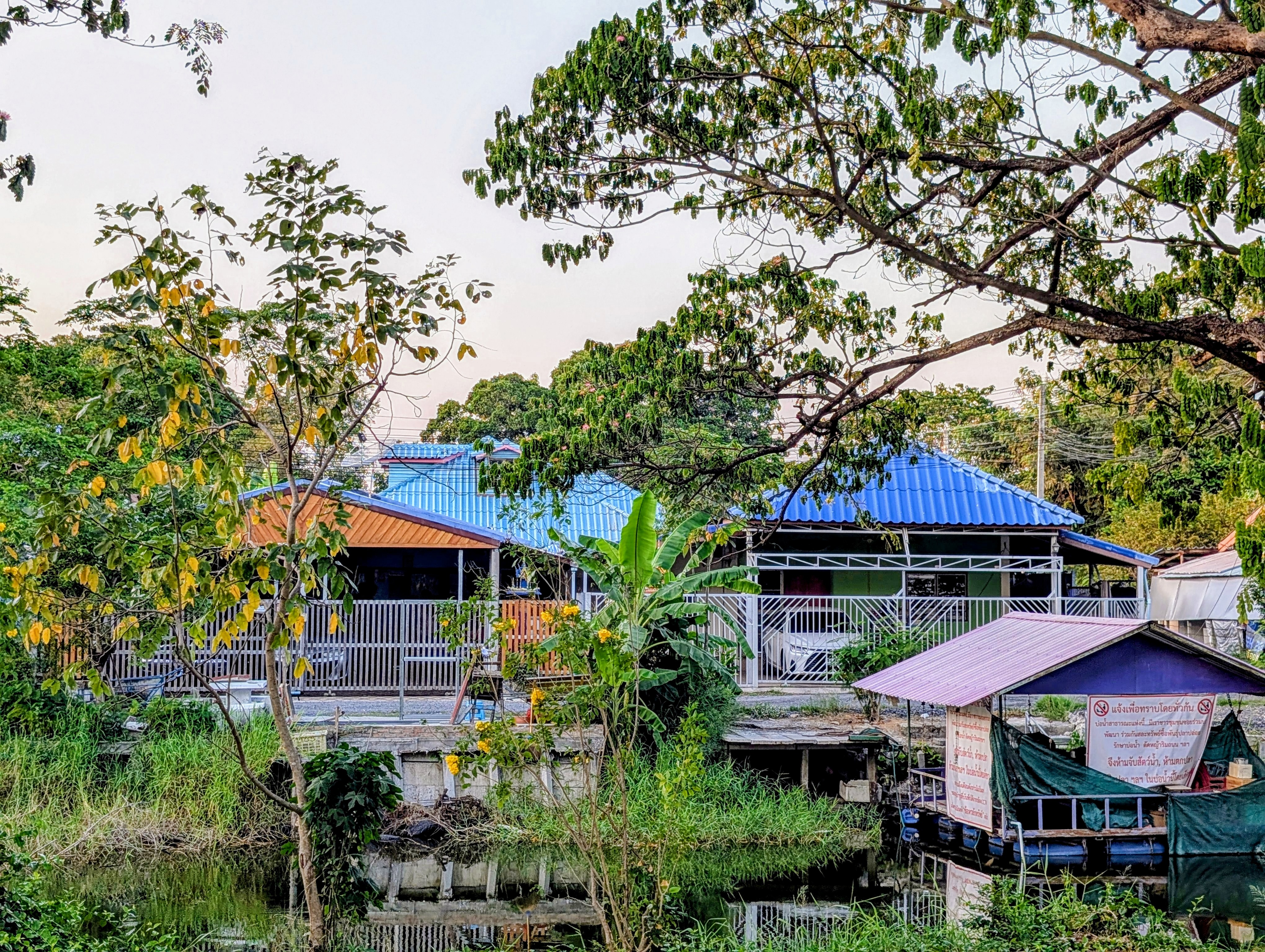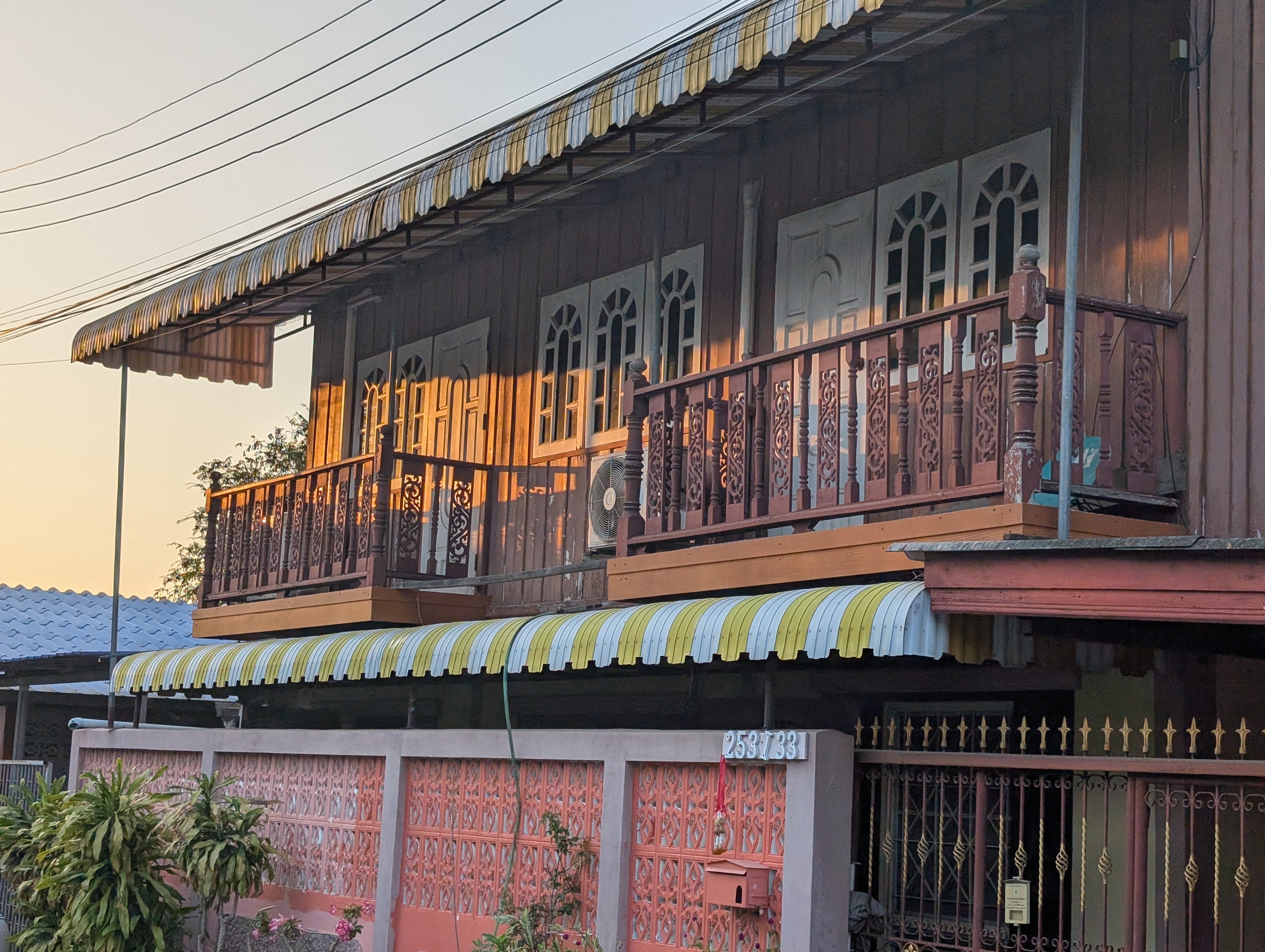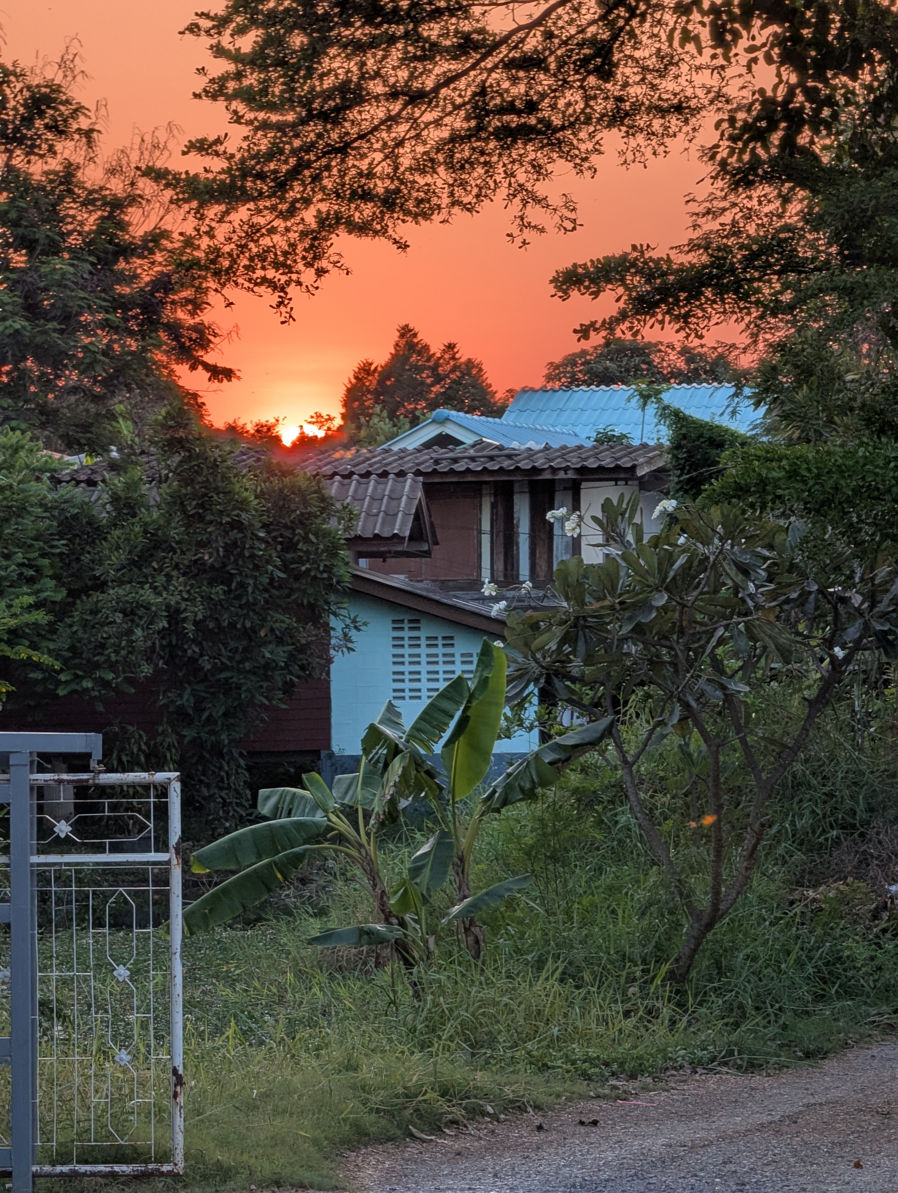 Gestern am Abend machten wir eine Runde um unsere Anlage, so wie man eine Dorfrunde macht und es war ja auch kaum mehr. Ein paar Läden, ein paar Werkstätten, Häuser verschiedenster Einkommensgruppen aber niemand wirklich arm. Teilweise ganz typisch gebaut, nämlich auf Betonstehern, auf denen sich dann die Wohnung selbst befindet. Unten ist oftmals die Küche im Freien, der Rest des Freiraums ist für Fahrräder, Mopeds oder Autos bzw. sonstiges Material zum Lagern. Abends sitzt alles im Freien beim Essen, Plaudern oder Fernsehen und genießt den feinen Wind, der durch die Gassen streift.