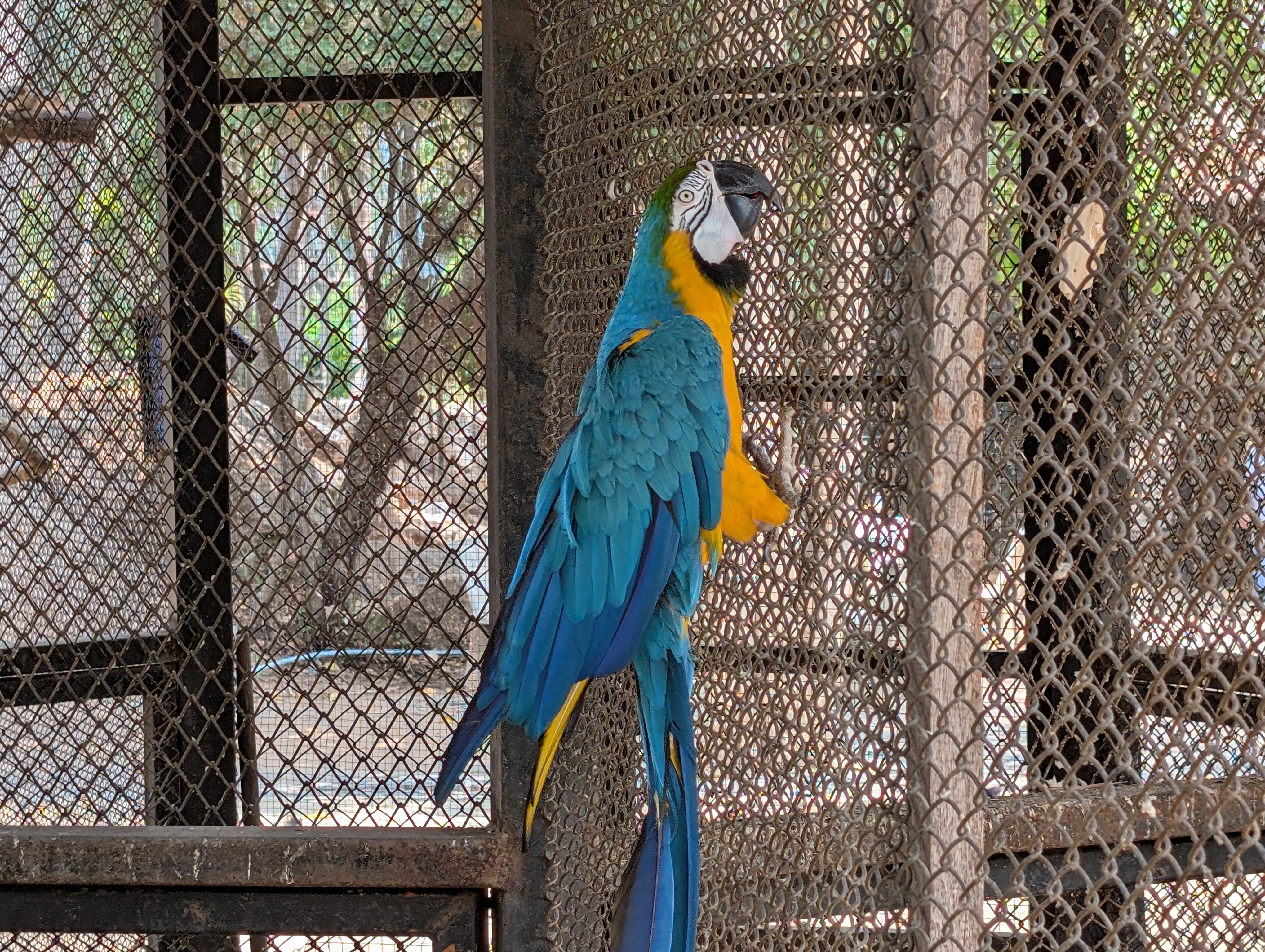 Heute begann es während des Frühstücks zu regnen. Der erste Regen seit fast 9 Wochen. Auf dem Weg nach Phitsanulok goss es dann eine kurze Zeit und alles war wieder vorbei. In Chainat unterbrachen wir die Fahrt und besuchten einen Birdpark, in dem auch Echsen herumwanderten. Er beherbergt auch ein Aquarium neben den Volieren und das ist doch für unseren Geschmack etwas befremdlich gestaltet. Wir haben wunderschöne Vögel gesehen, ganz besonders beeindruckend waren die weißen Pfaue.